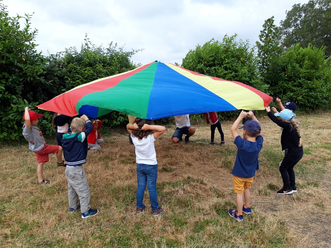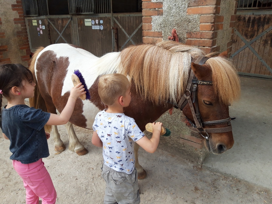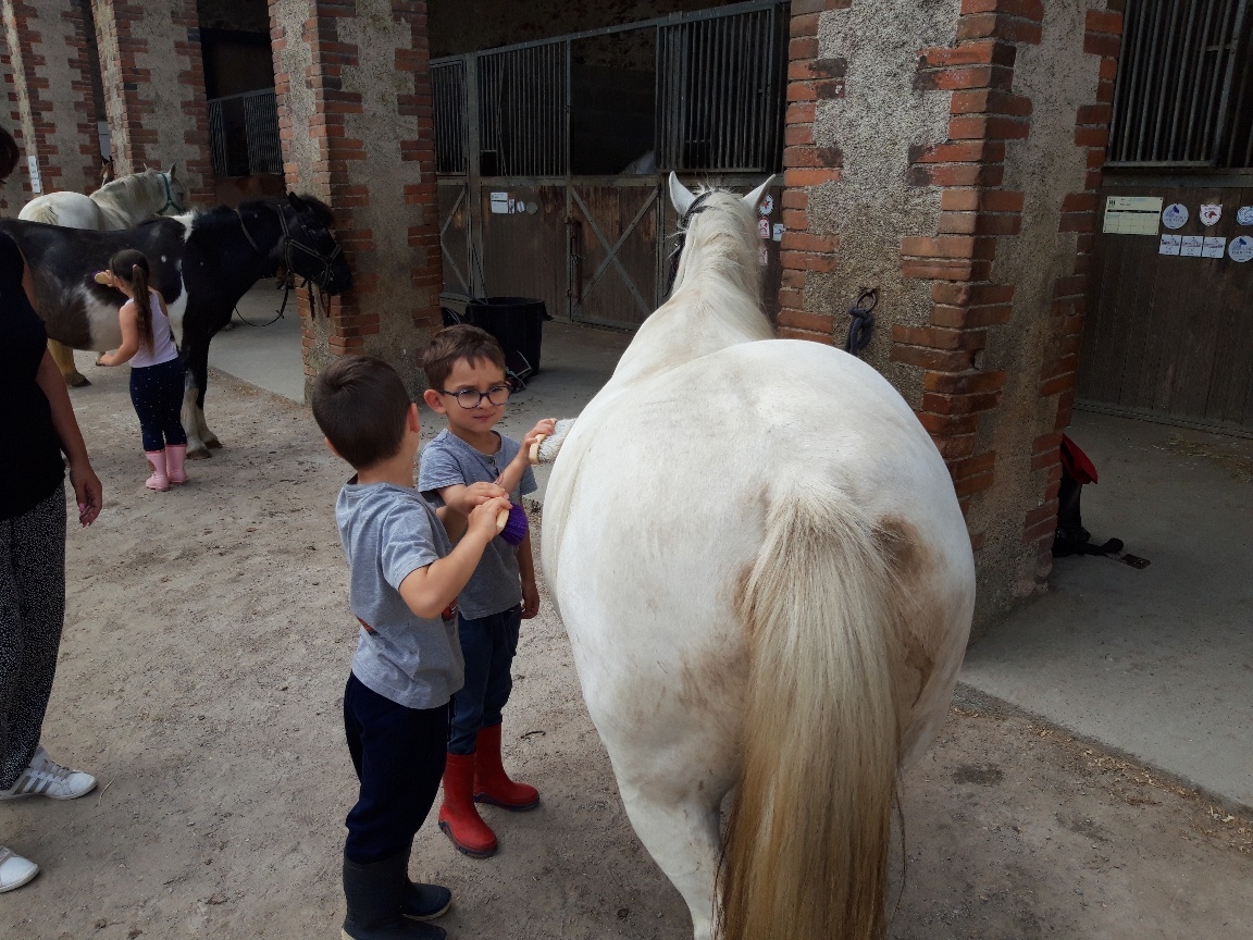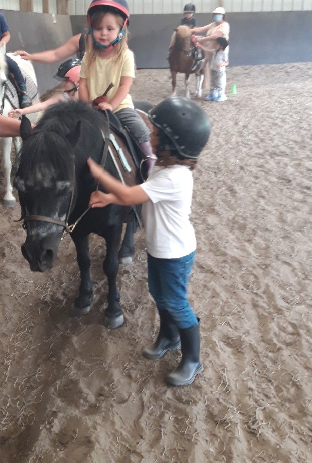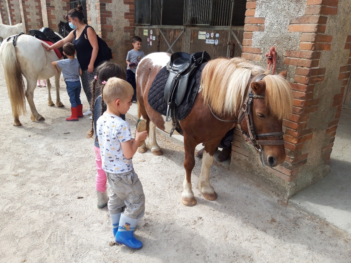 Les enfants ont d’abord participé a des jeux (parcours , parachute) puis ils se sont préparés pour monter à poney!