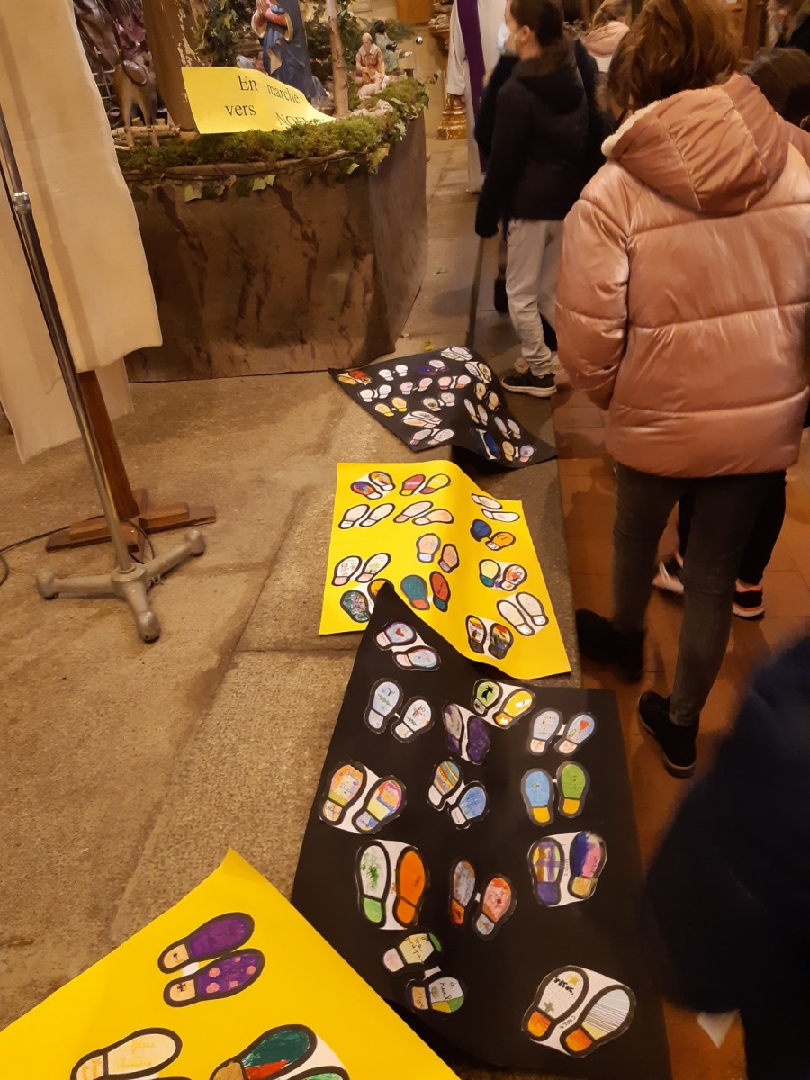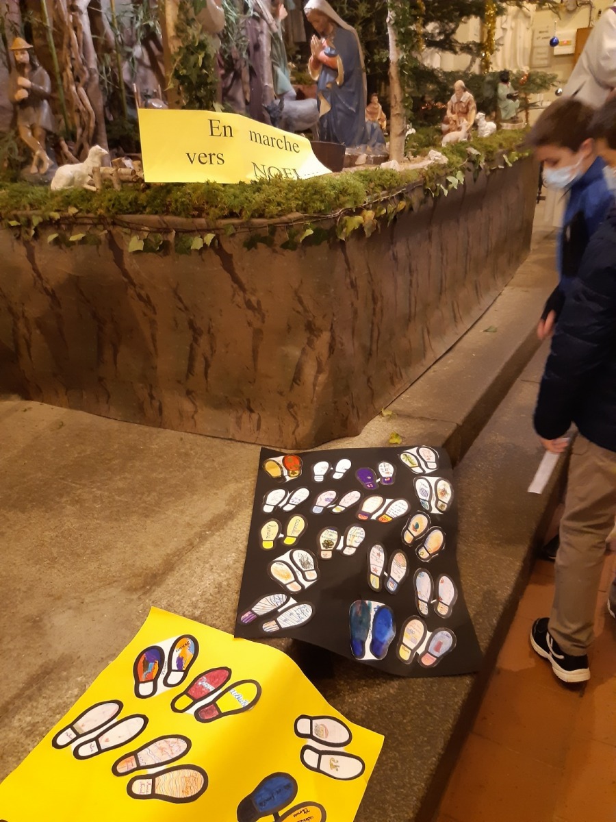 Jeudi 16 décembre au matin, les écoliers de l’école Notre Dame du Sacré Cœur étaient rassemblés à l’église pour une célébration de l’Avent en présence du Père Patrice et quelques familles. Autour de la Crèche, les enfants ont déposé « des pas » en Marche vers Noël.