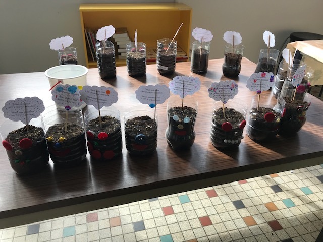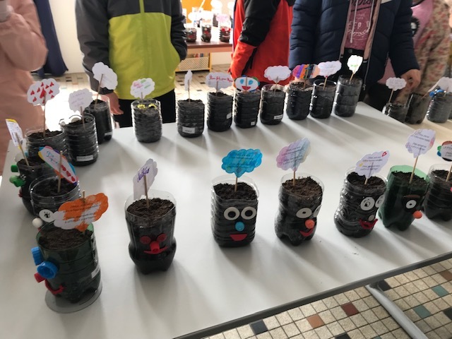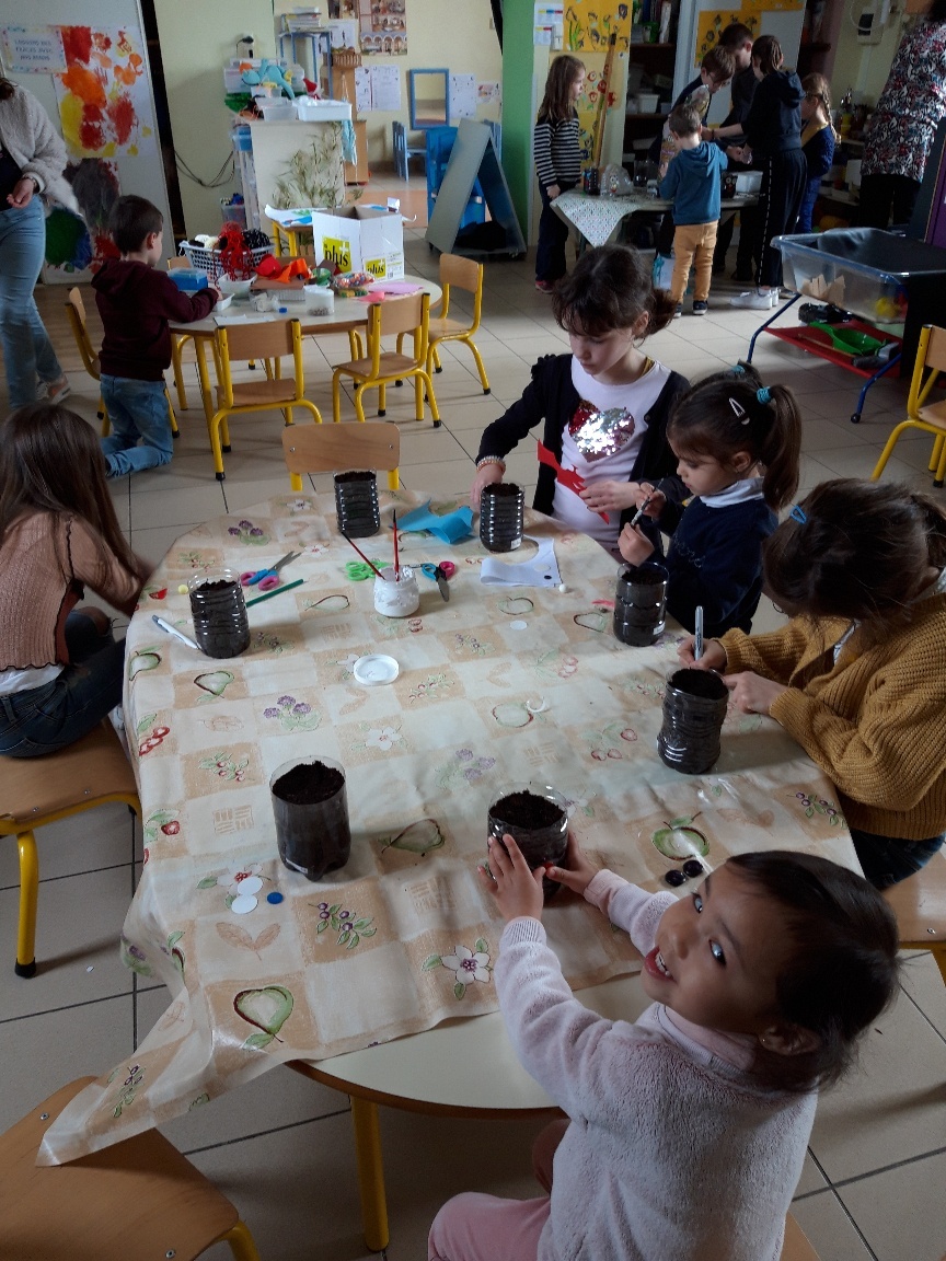 En début d’après-midi, des ateliers multi-âges ont permis aux élèves de réaliser un bricolage » une tête à gazon » (faire germer des graines) et décorer une petite prière.