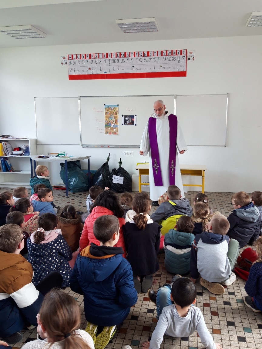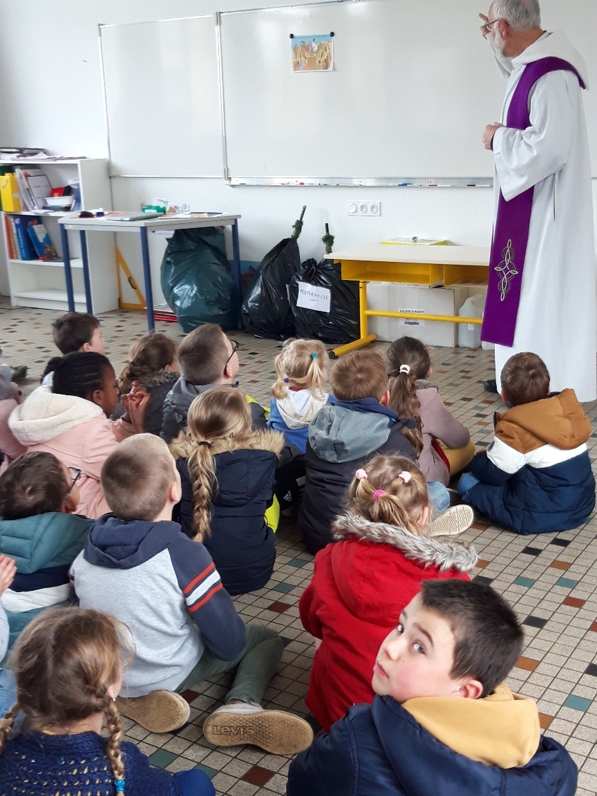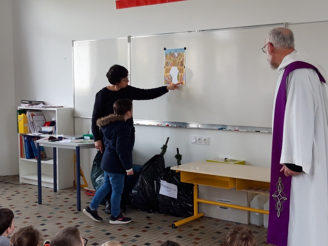 Puis avec l’équipe éducative et le Père Patrice Eon, les élèves se sont tous réunis. Pendant ce rassemblement, on a rappelé le sens du Carême, de la Semaine Sainte sur le chemin vers Pâques.