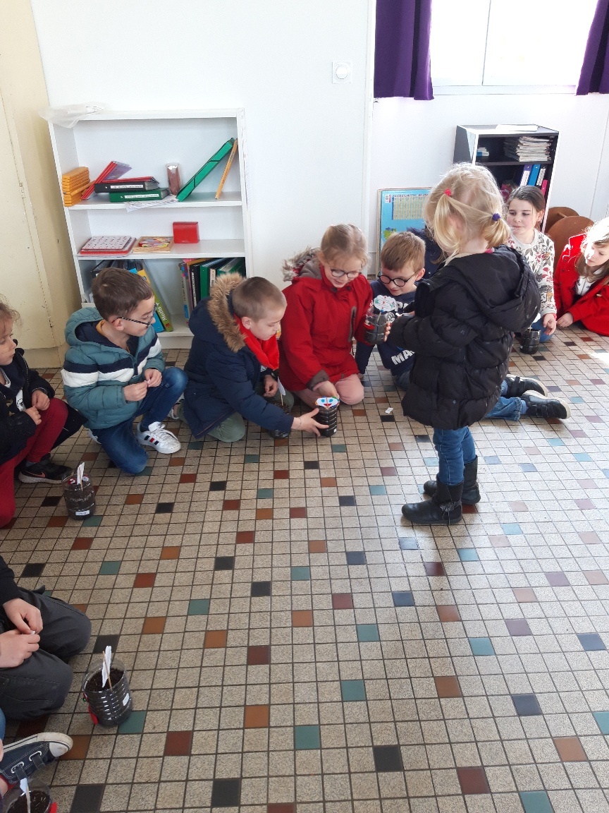En fin de journée, chaque enfant a offert son bricolage à un élève ou à un adulte de l’école.