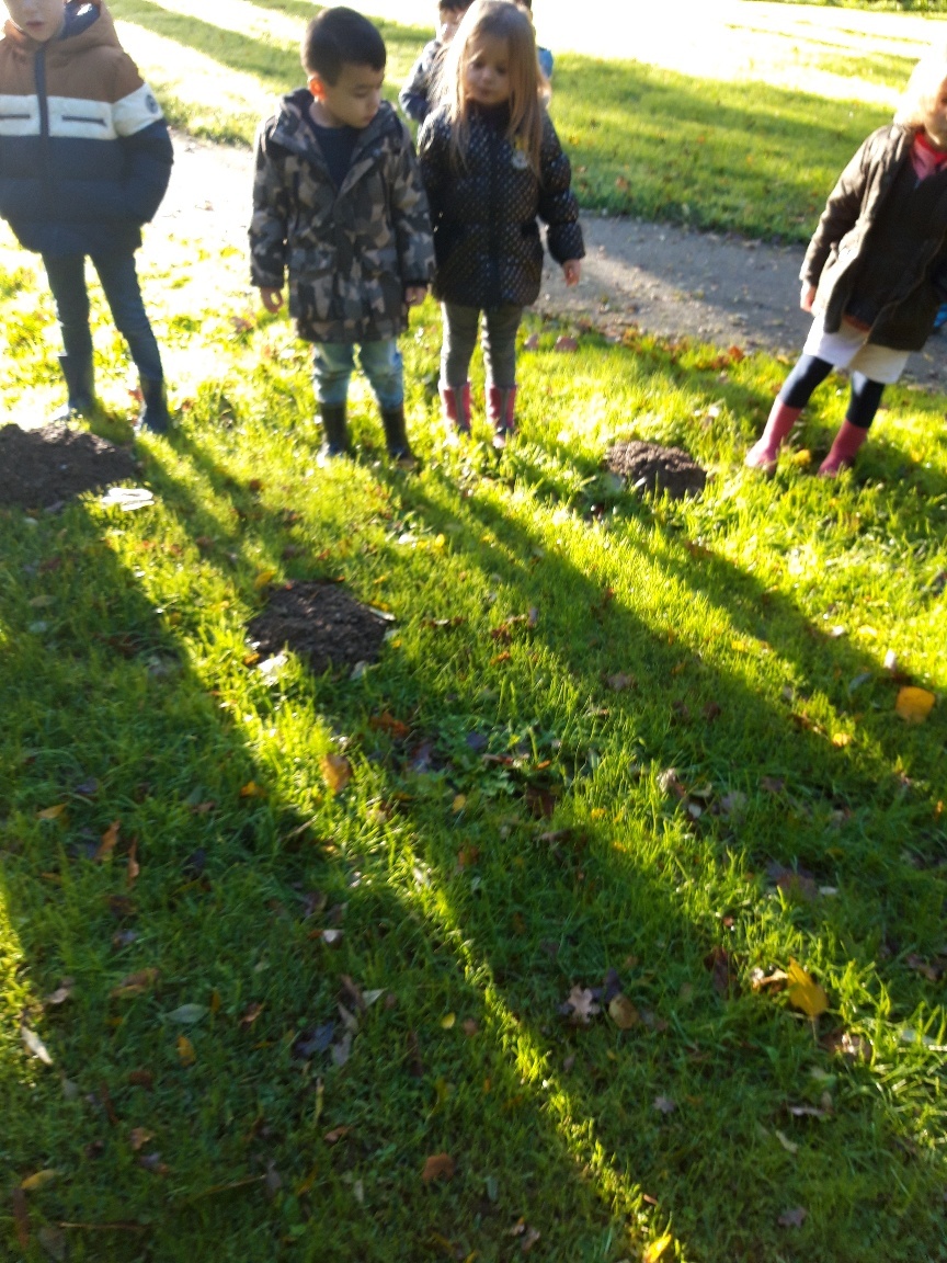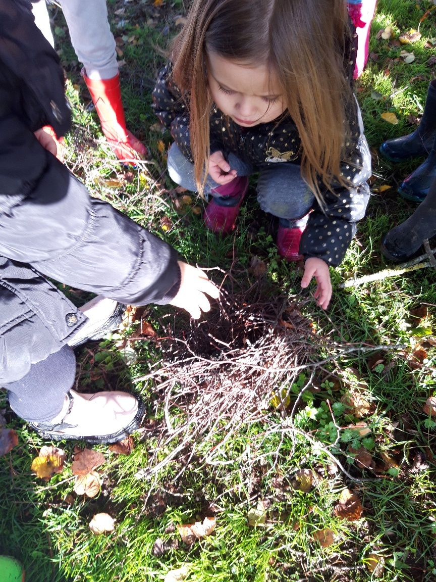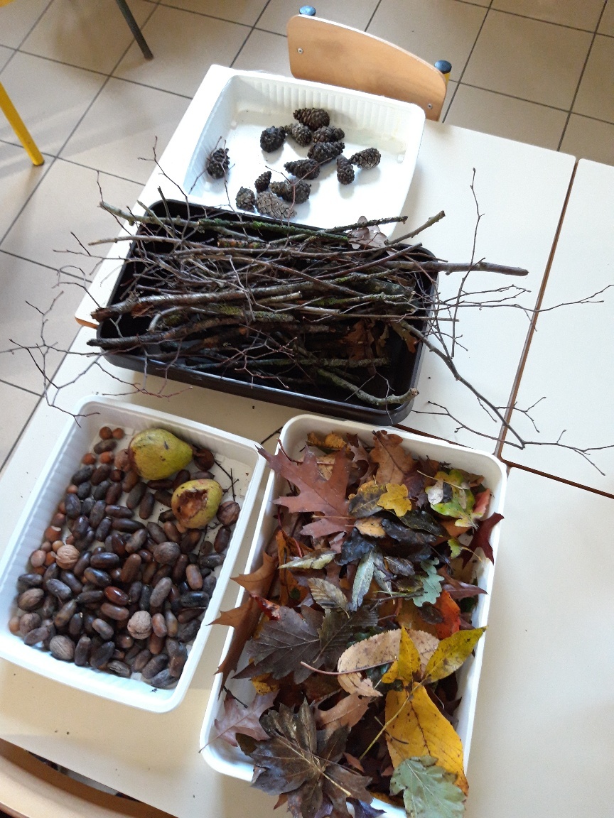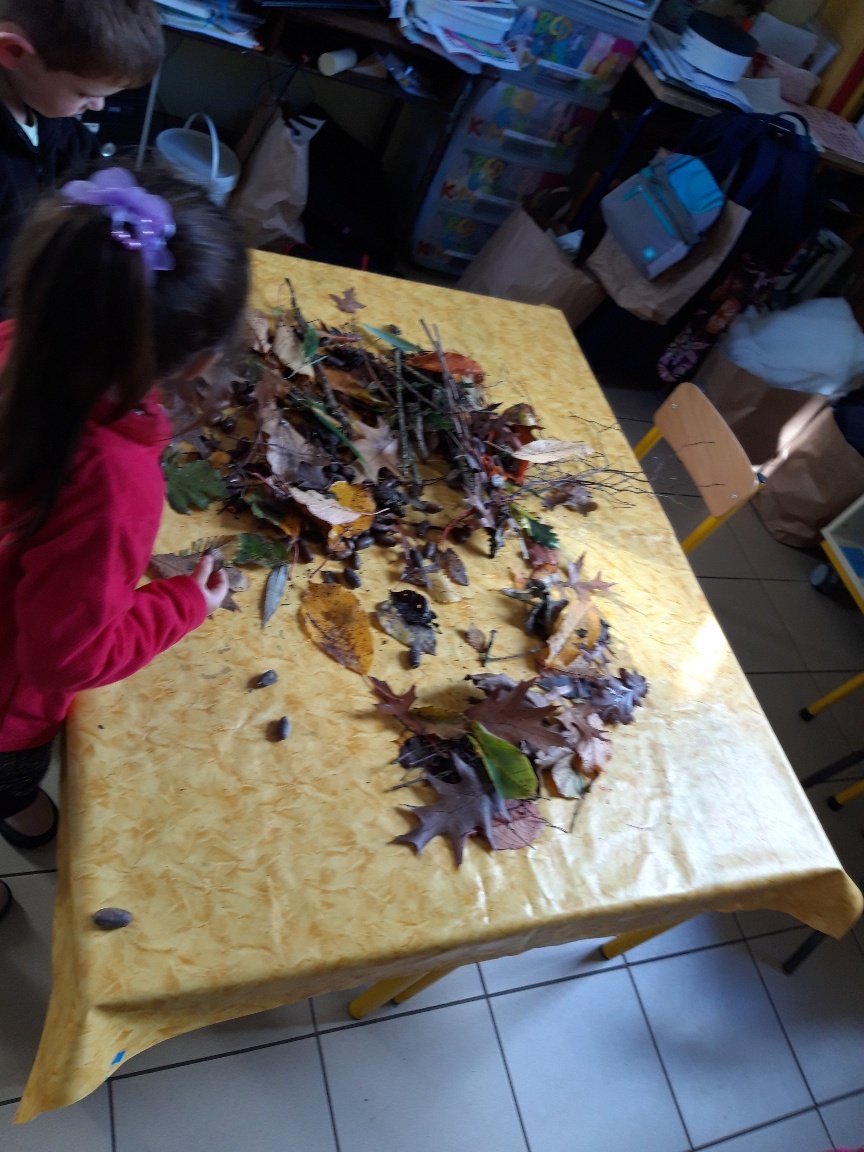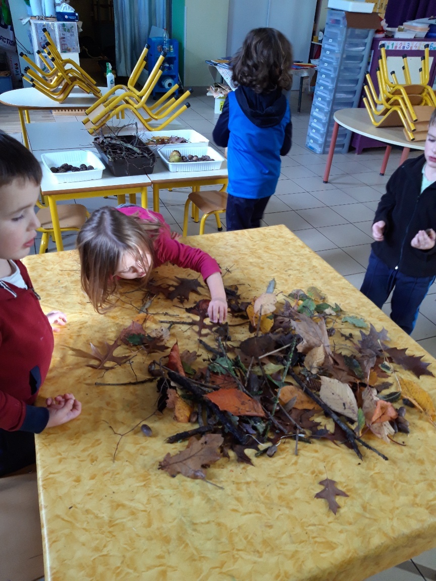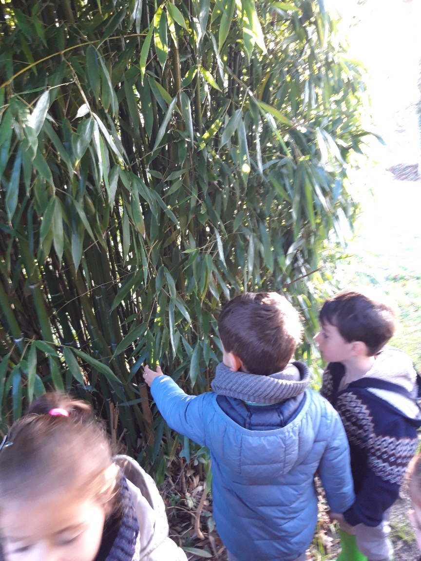 Vendredi 18 novembre les enfants de la classe de PS MS GS sont allés faire une promenade pour observer la nature en automne et faire une collecte de feuilles, de fruits et branches. Les enfants ont observé des arbres avec plus ou moins de feuilles, des nids, des champignons, des cabanes pour les mésanges, des taupinières, de la lavande, du bambou, les boites aux lettres (même celle du Père Noël!)…