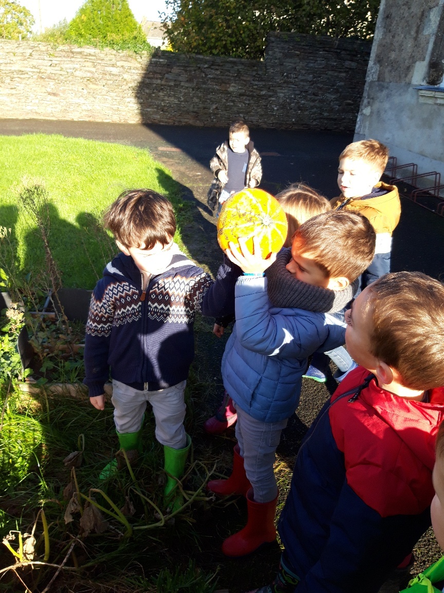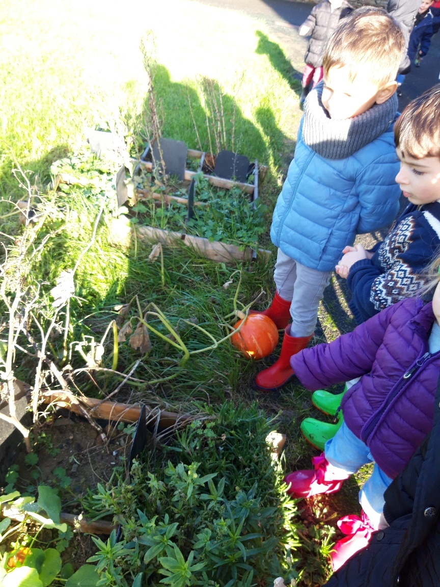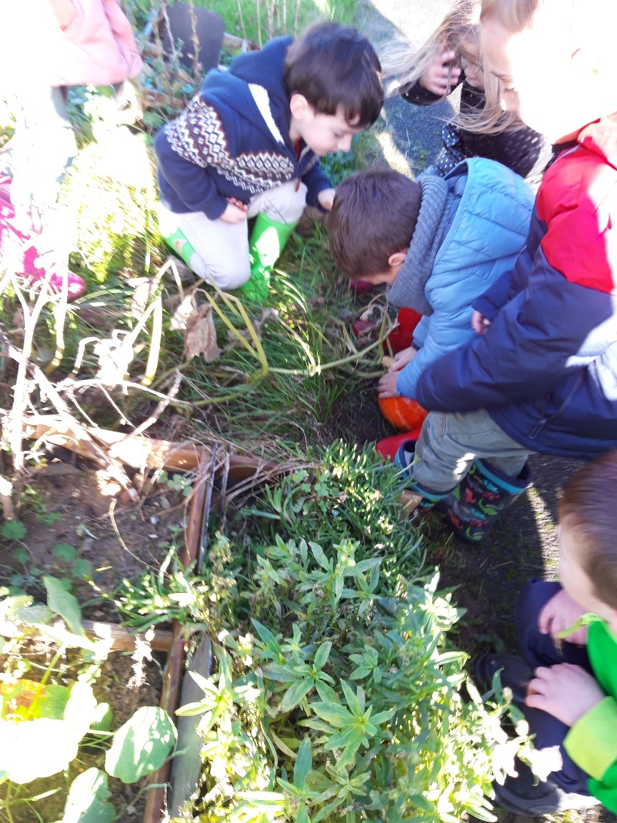 A l’école nous avons cueilli la citrouille de notre jardin puis il a fallu trier nos trouvailles.