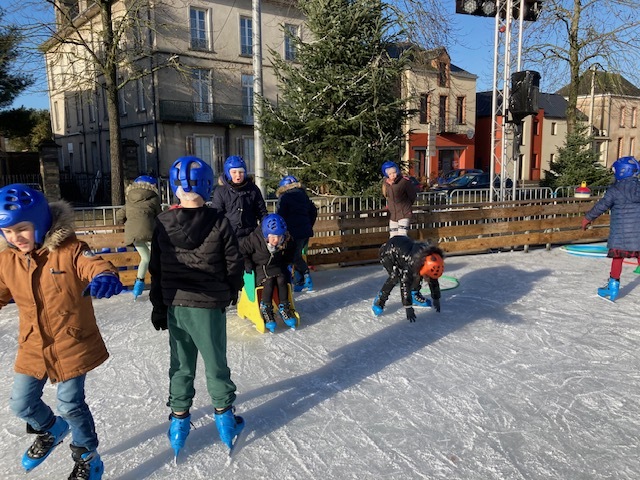 Le vendredi 8 décembre 2023, les élèves de CP – CE1 – CE2 ont bénéficié d’une séance « découverte de la glisse » à la patinoire de Chateaubriant. Chacun a pu se familiariser librement, à son rythme à ce milieu, avec ou sans l’aide de la luge ou d’un camarade pour finalement réussir à traverser seul,  sans matériel et… sans tomber : BRAVO !