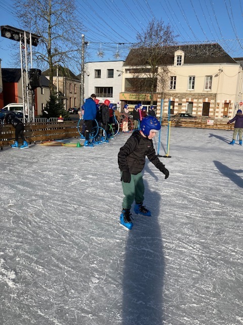 Le vendredi 8 décembre 2023, les élèves de CP – CE1 – CE2 ont bénéficié d’une séance « découverte de la glisse » à la patinoire de Chateaubriant. Chacun a pu se familiariser librement, à son rythme à ce milieu, avec ou sans l’aide de la luge ou d’un camarade pour finalement réussir à traverser seul,  sans matériel et… sans tomber : BRAVO !
