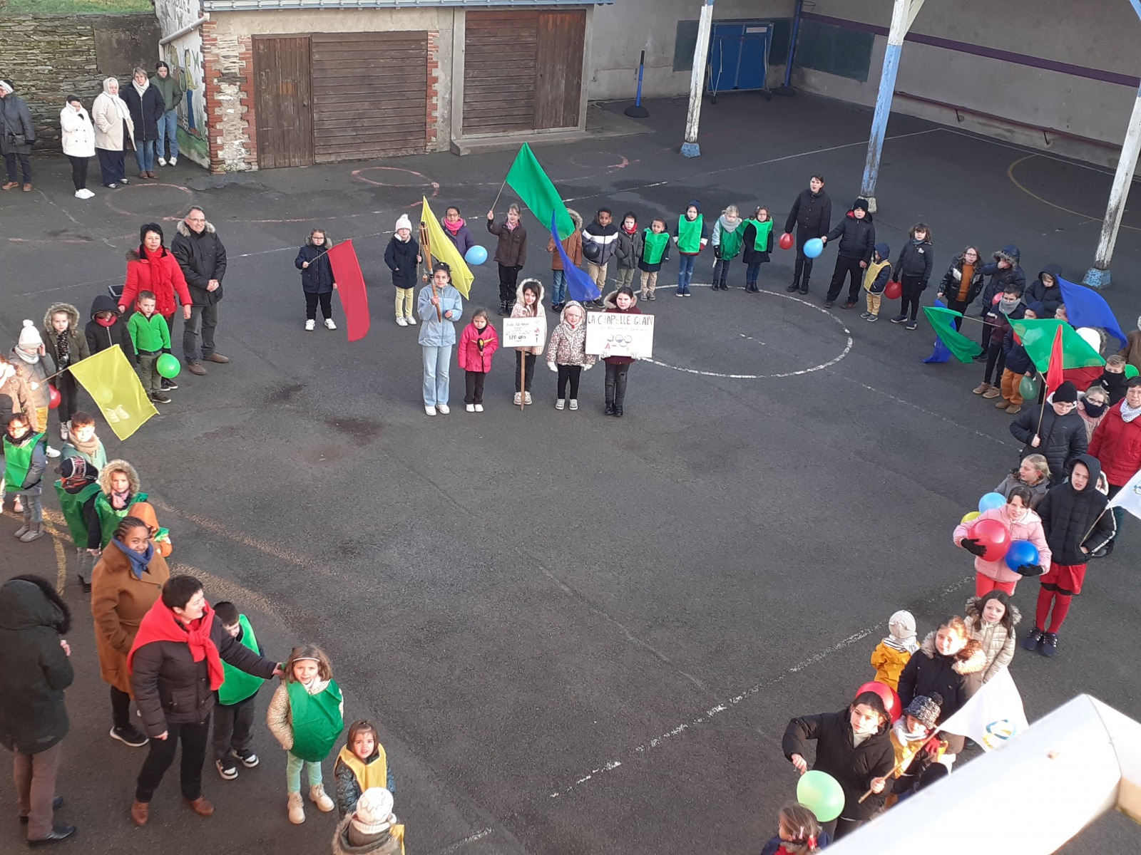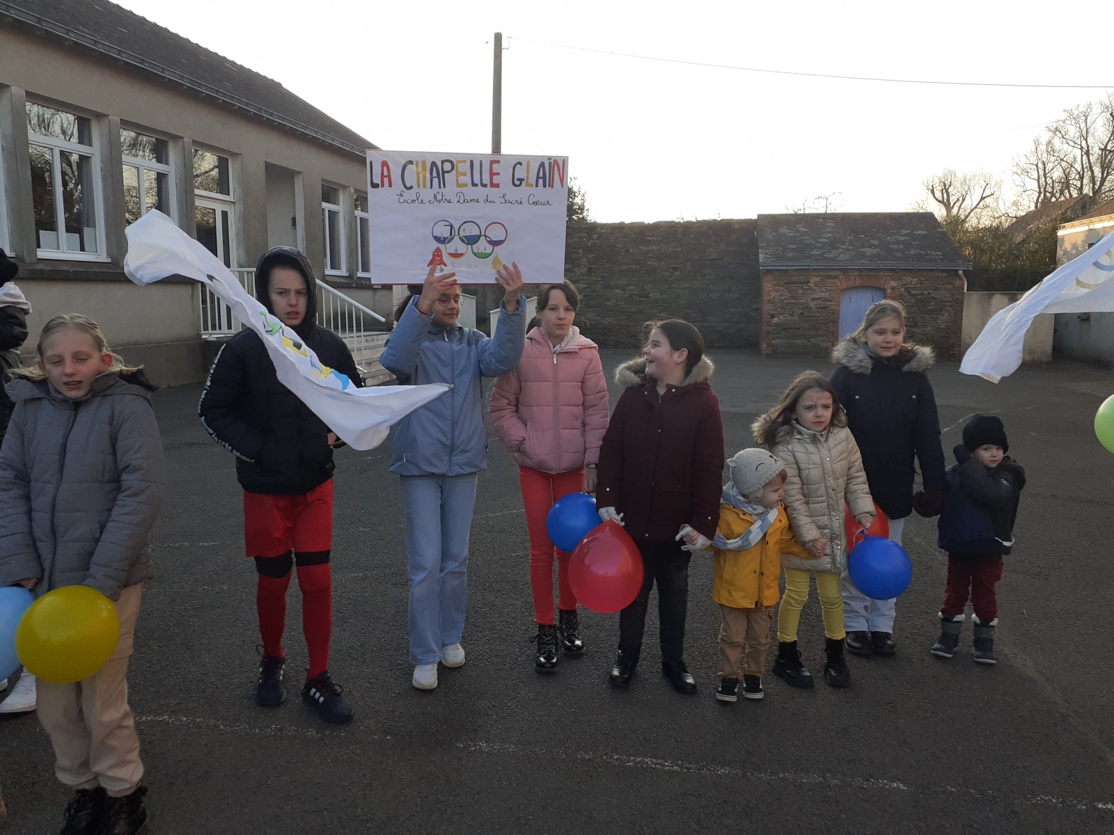 Ce lundi 8 janvier 2024, pour démarrer cette nouvelle année, toute la communauté éducative de l’école Notre Dame du Sacré Cœur s’est réunie sur la cour pour accueillir la torche transmise par des élèves de l’école Ste Anne de Freigné.