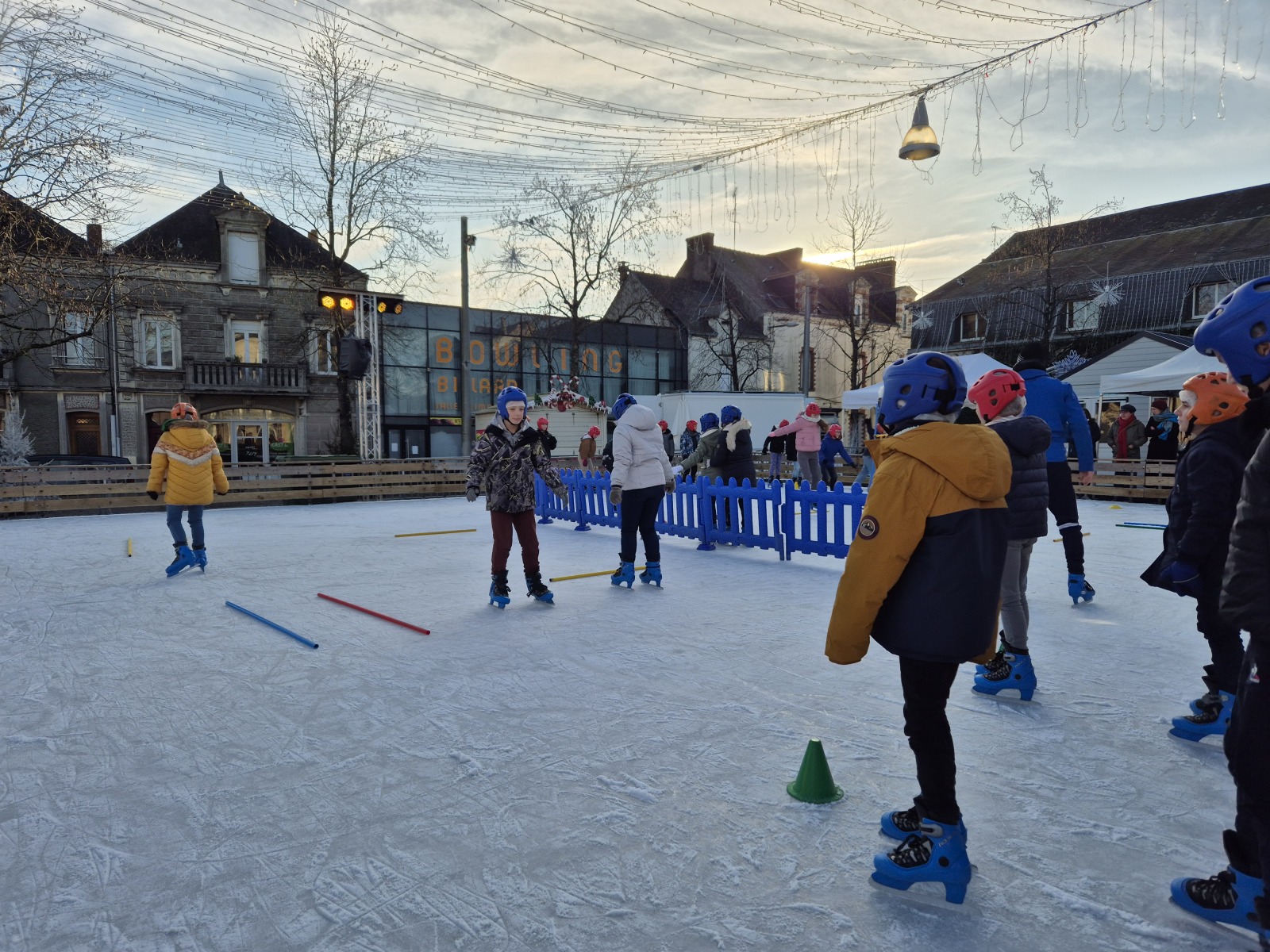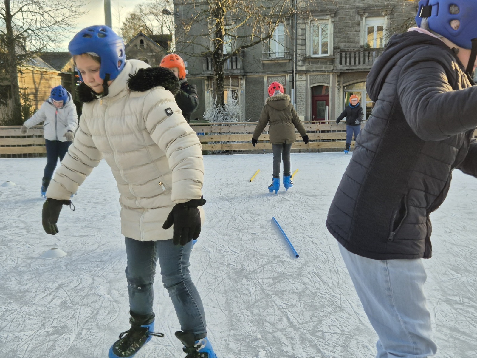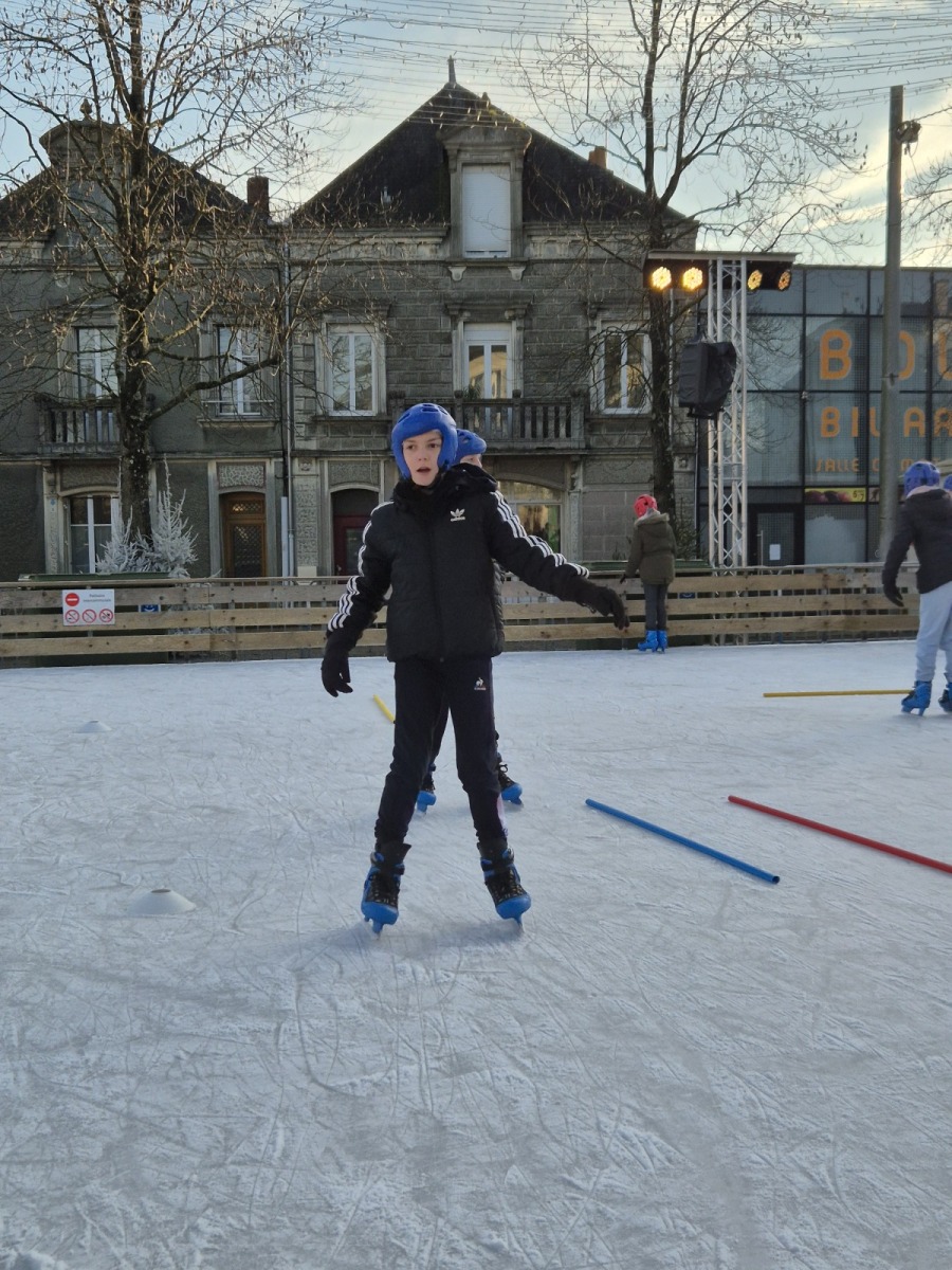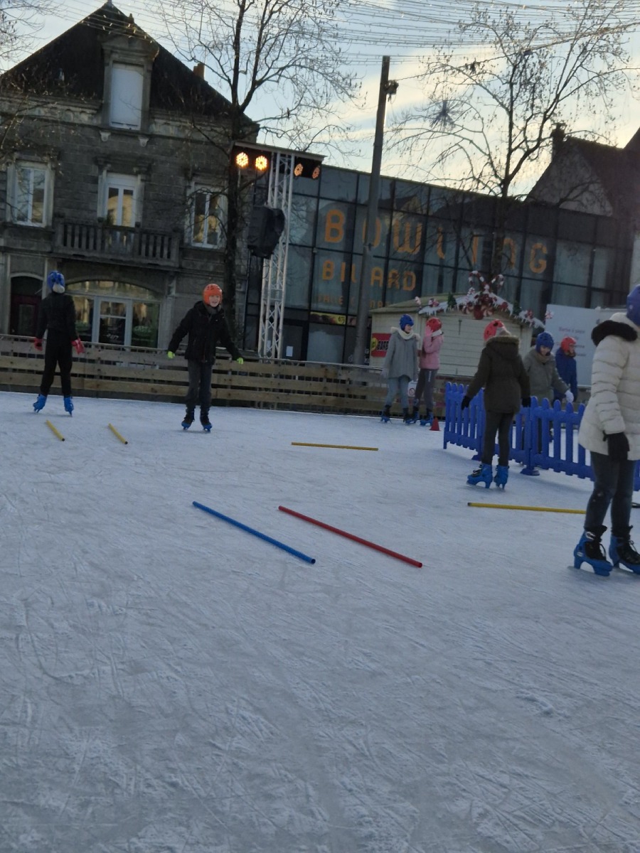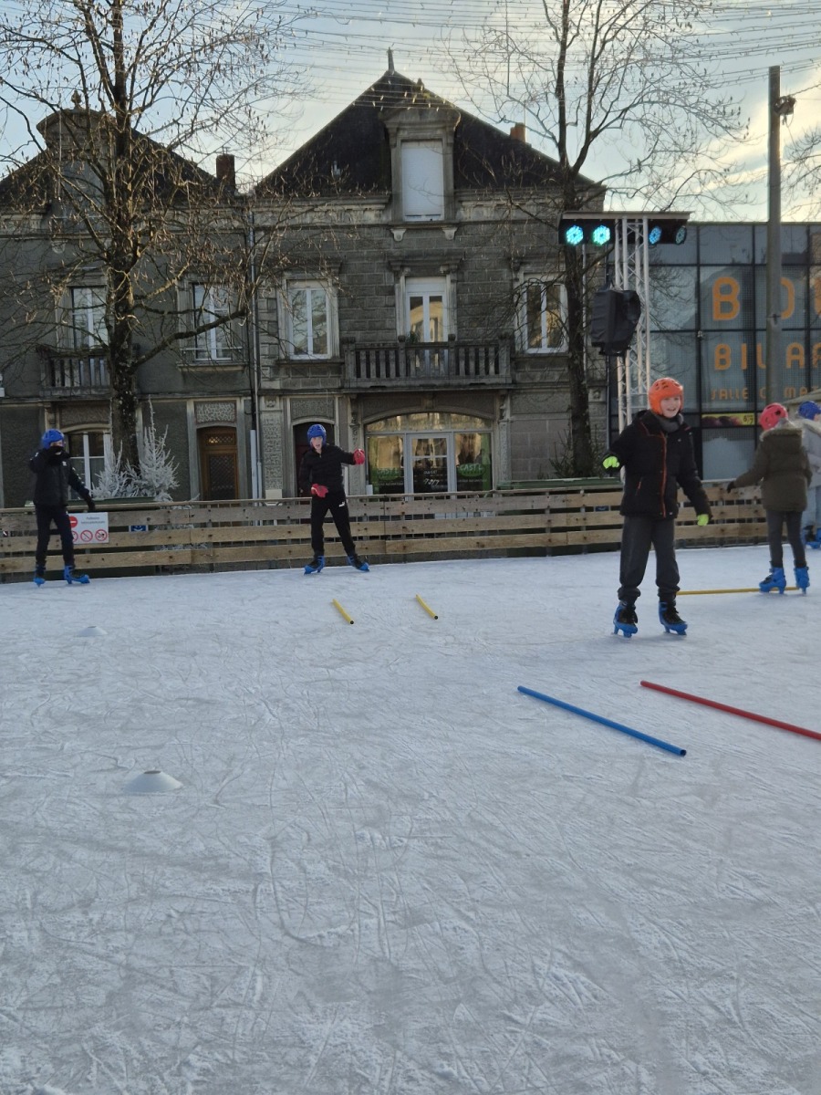 Les élèves de CM1-CM2 ont bénéficié de 3 séances à la patinoire de Châteaubriant. Tous ont enchaîné avec plaisir de nombreux exercices ludiques, tels que des parcours, des jeux en équipe, des slaloms, du freinage, qui leur ont permis d’acquérir une aisance sur les patins.