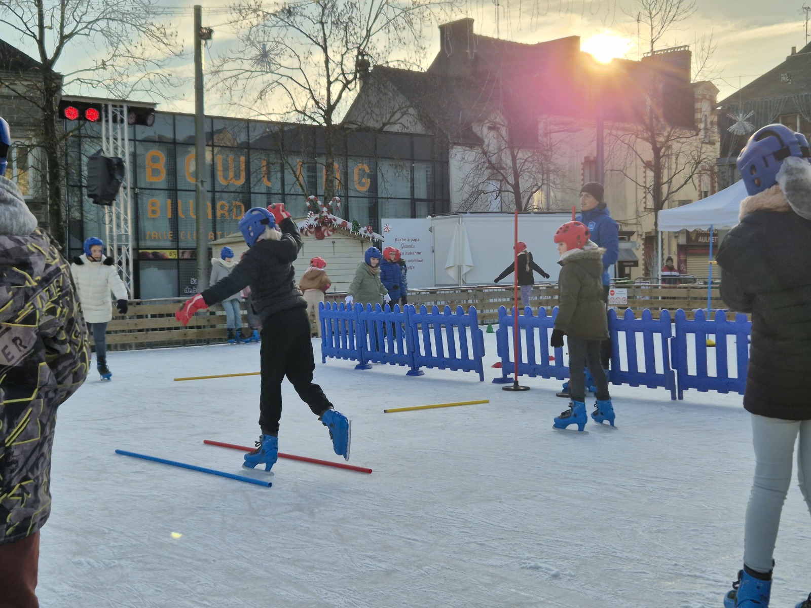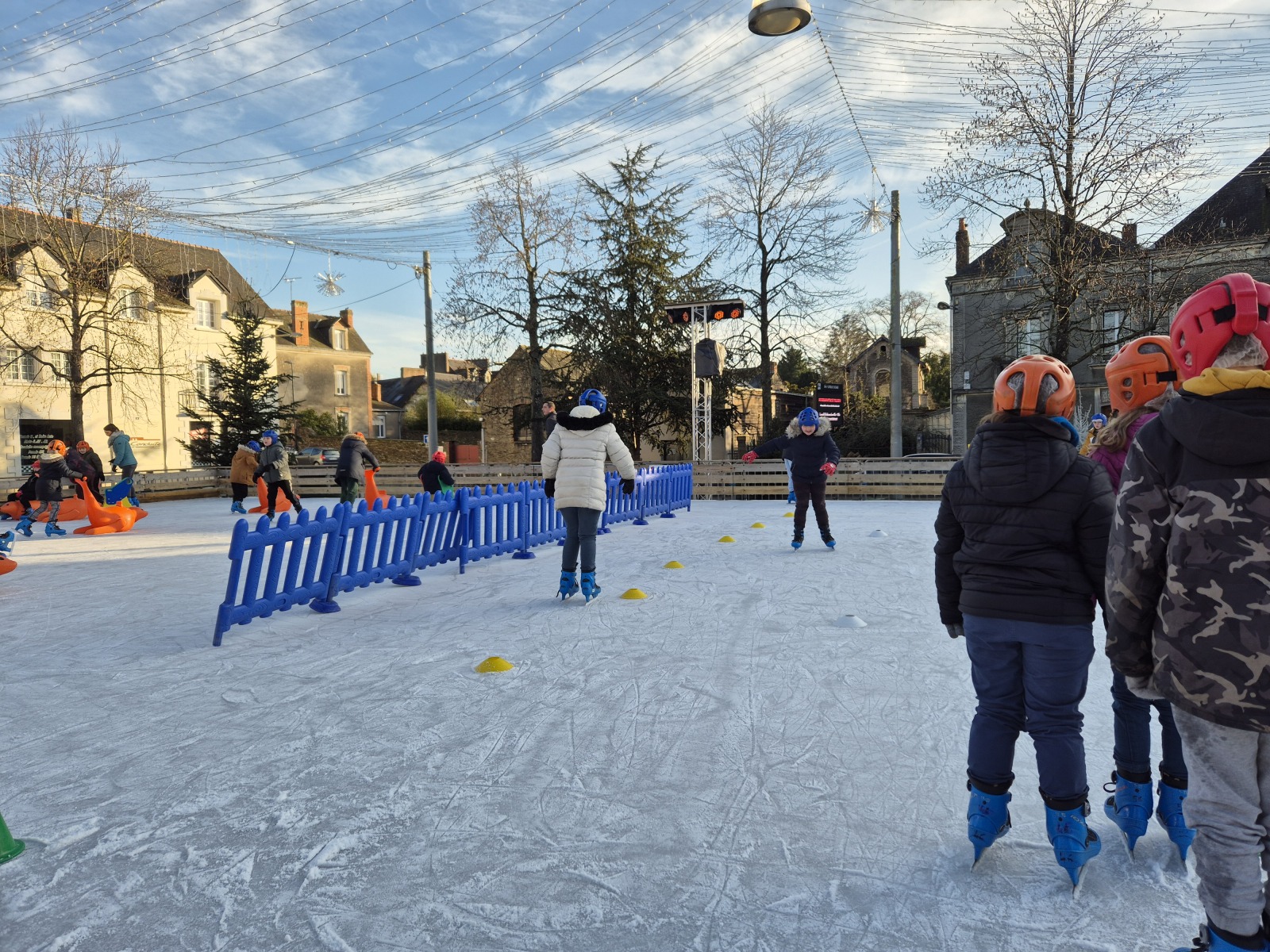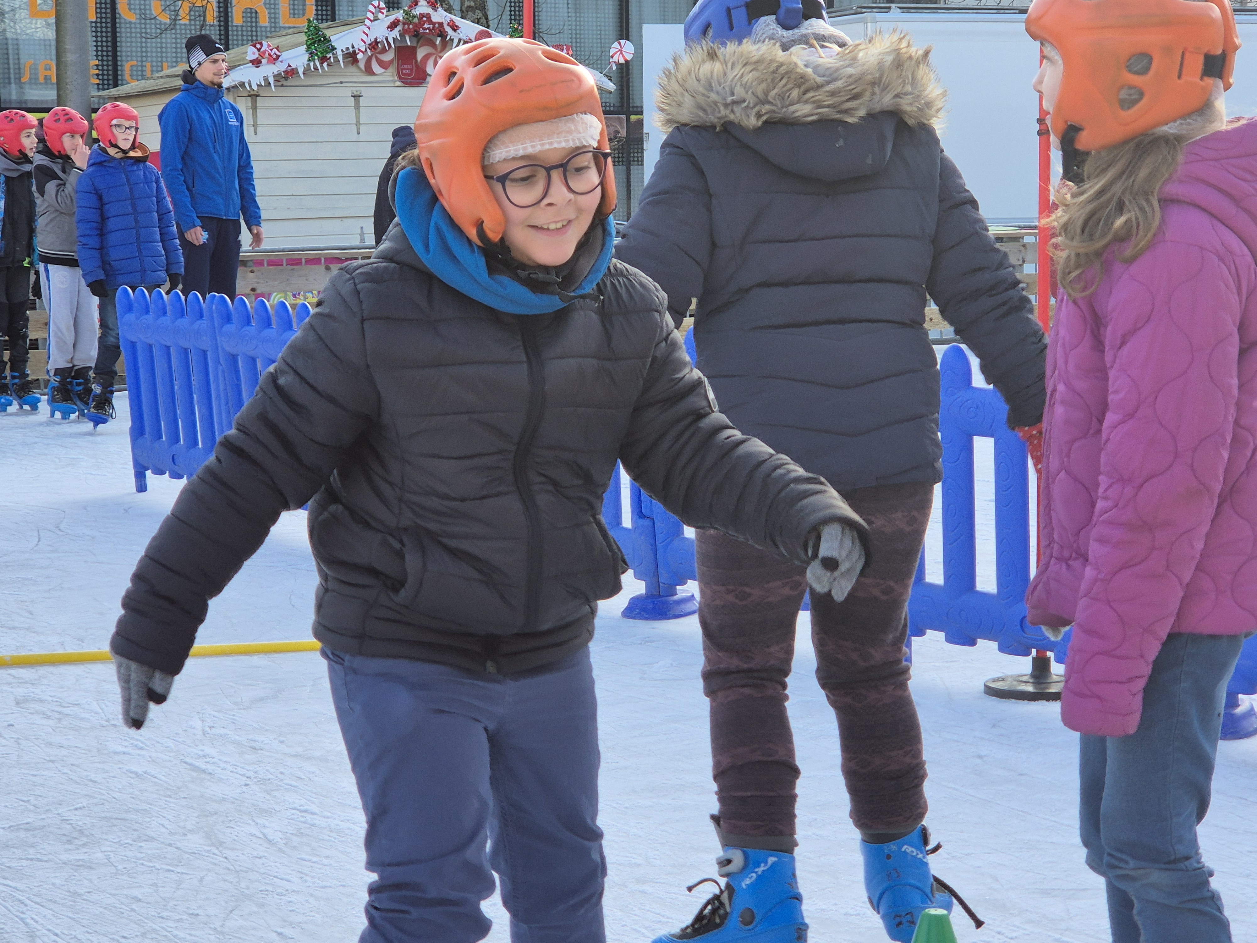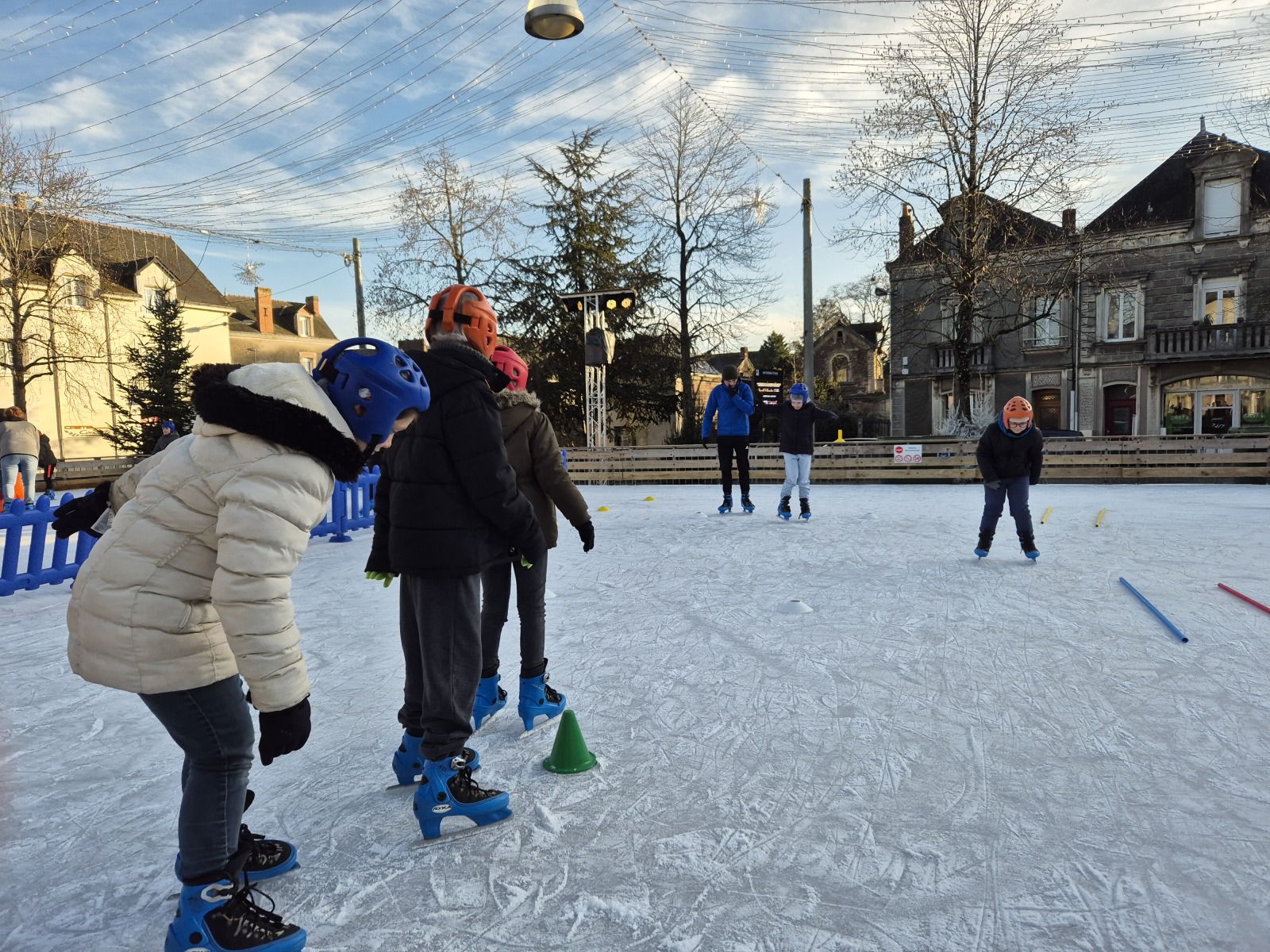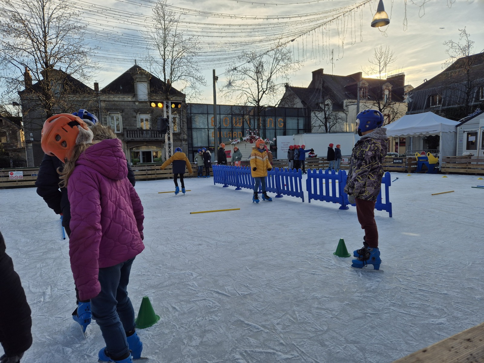 Les élèves de CM1-CM2 ont bénéficié de 3 séances à la patinoire de Châteaubriant. Tous ont enchaîné avec plaisir de nombreux exercices ludiques, tels que des parcours, des jeux en équipe, des slaloms, du freinage, qui leur ont permis d’acquérir une aisance sur les patins.