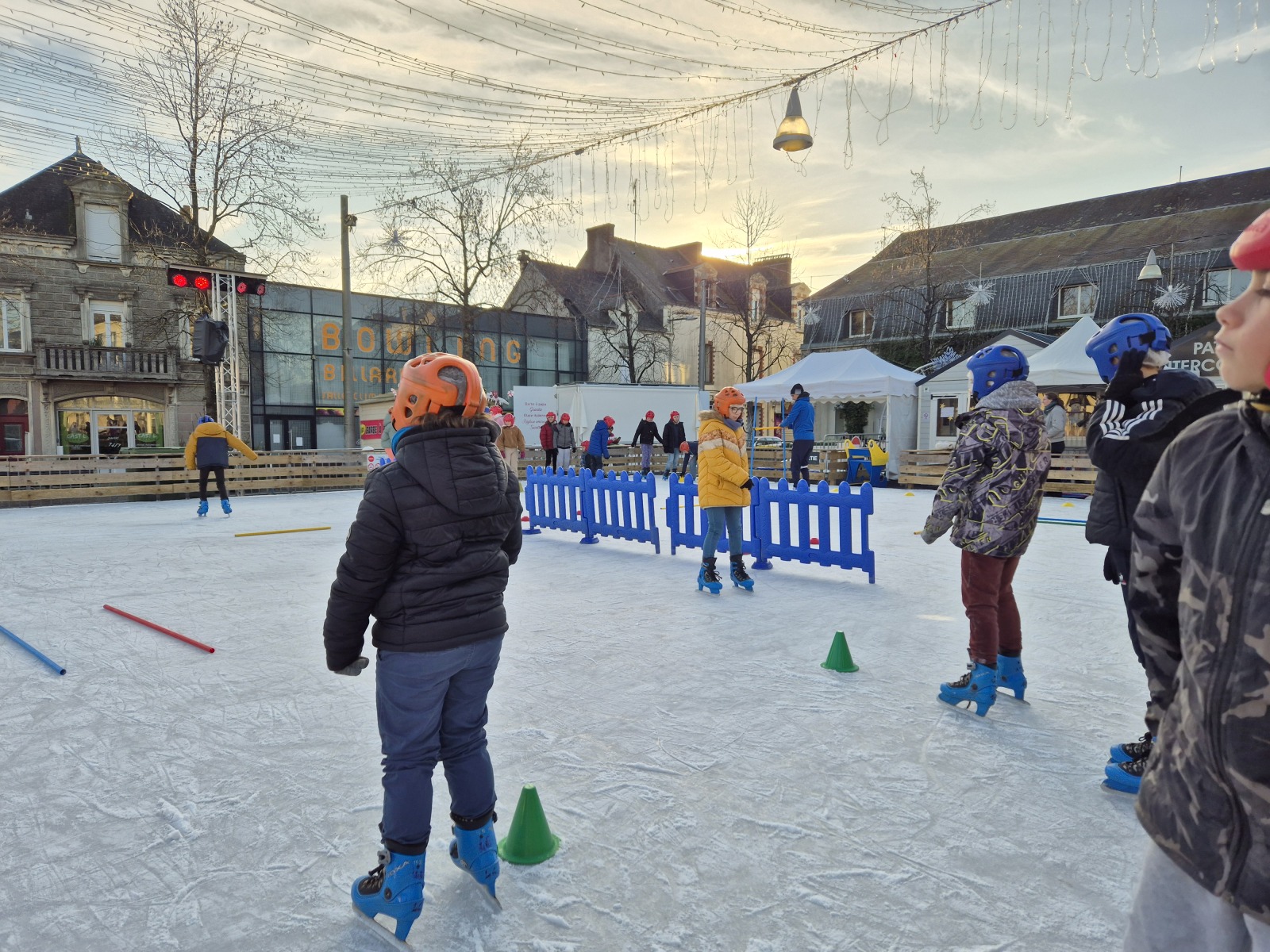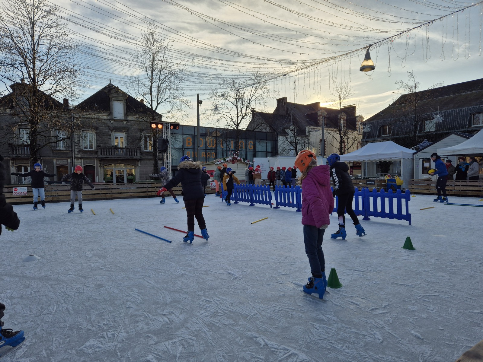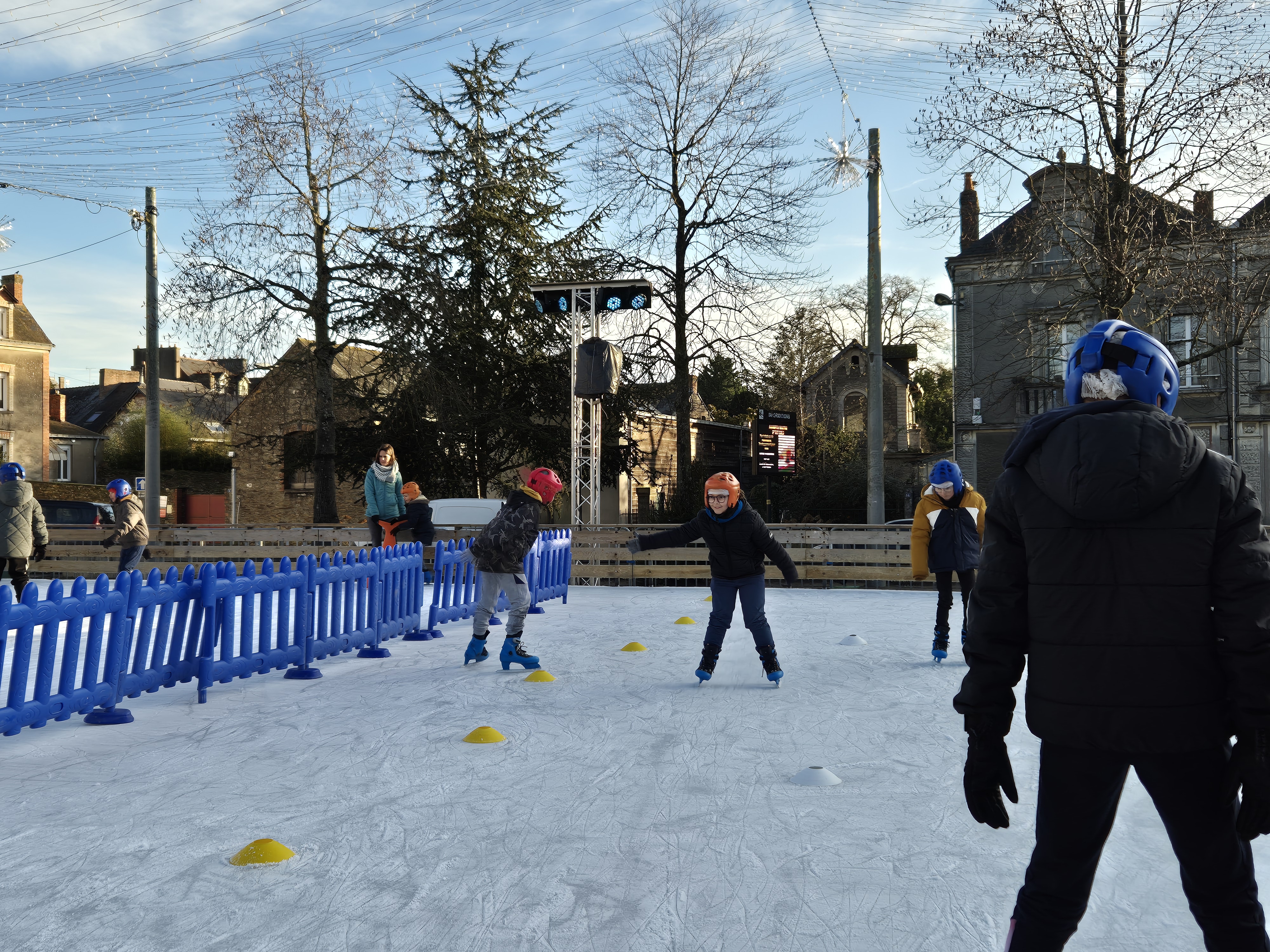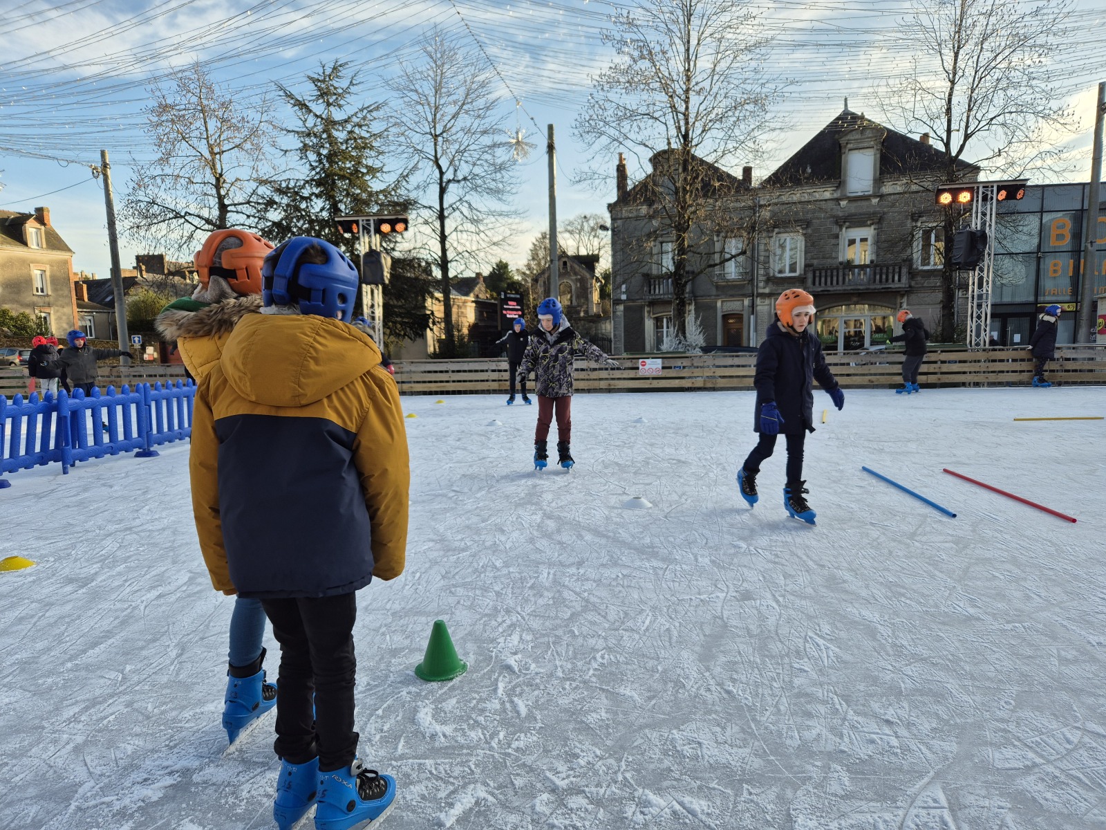 Les élèves de CM1-CM2 ont bénéficié de 3 séances à la patinoire de Châteaubriant. Tous ont enchaîné avec plaisir de nombreux exercices ludiques, tels que des parcours, des jeux en équipe, des slaloms, du freinage, qui leur ont permis d’acquérir une aisance sur les patins.