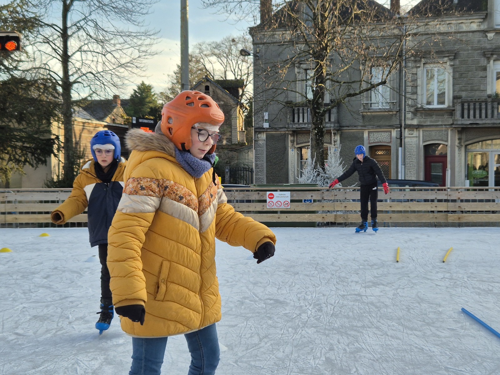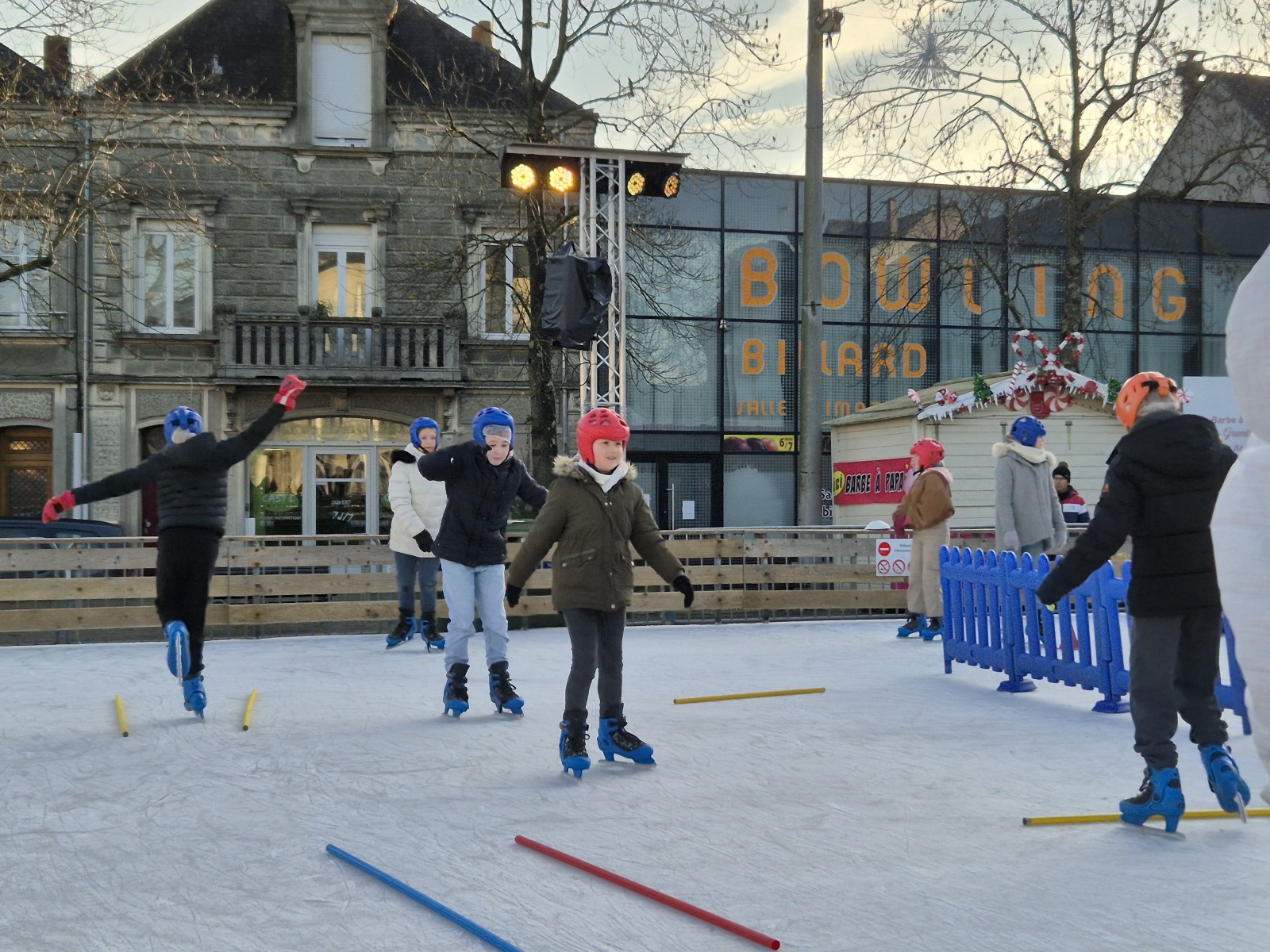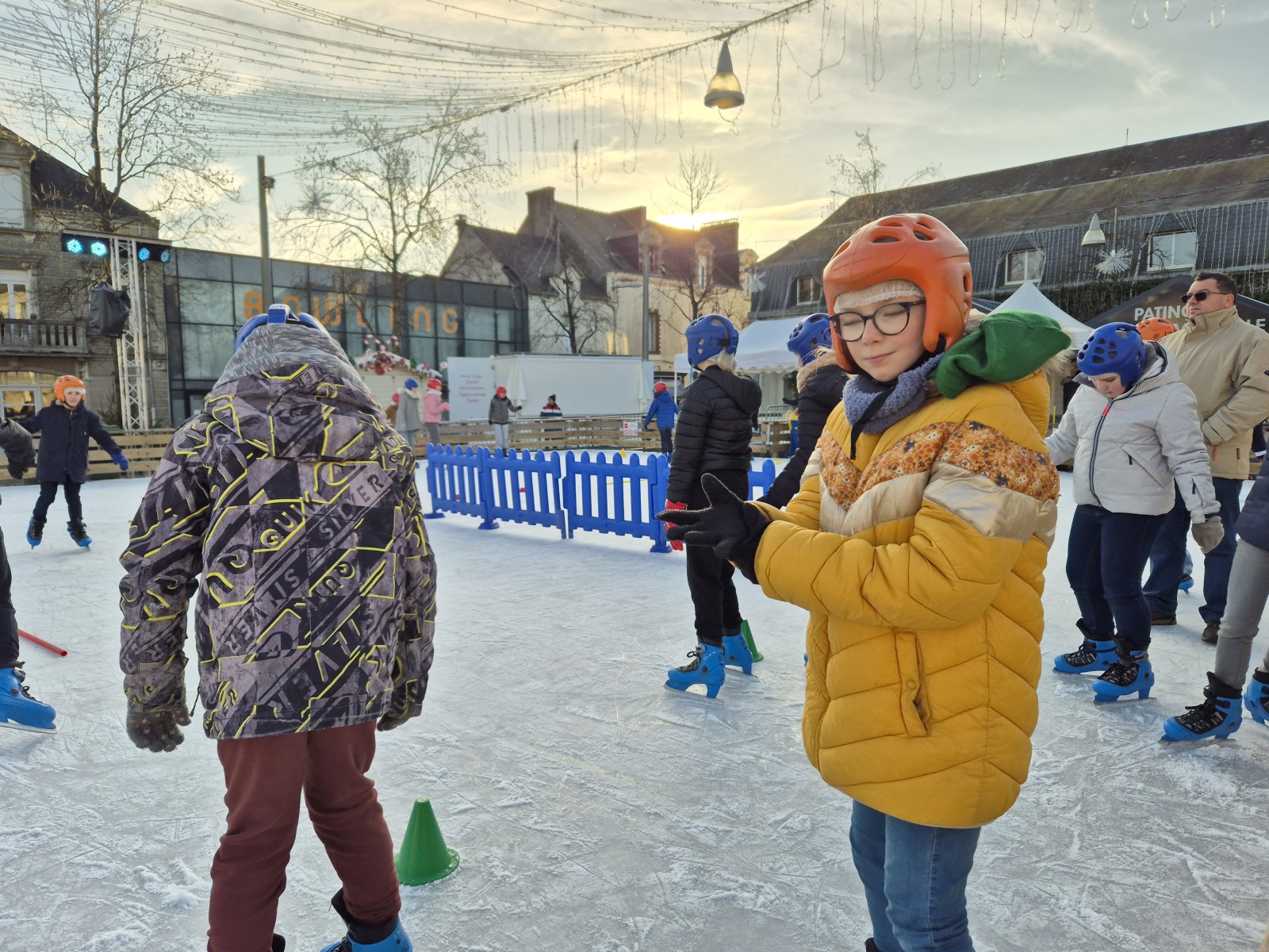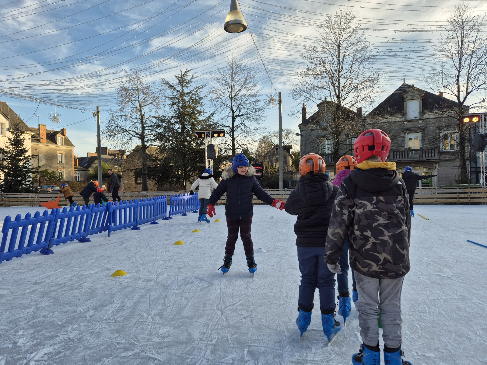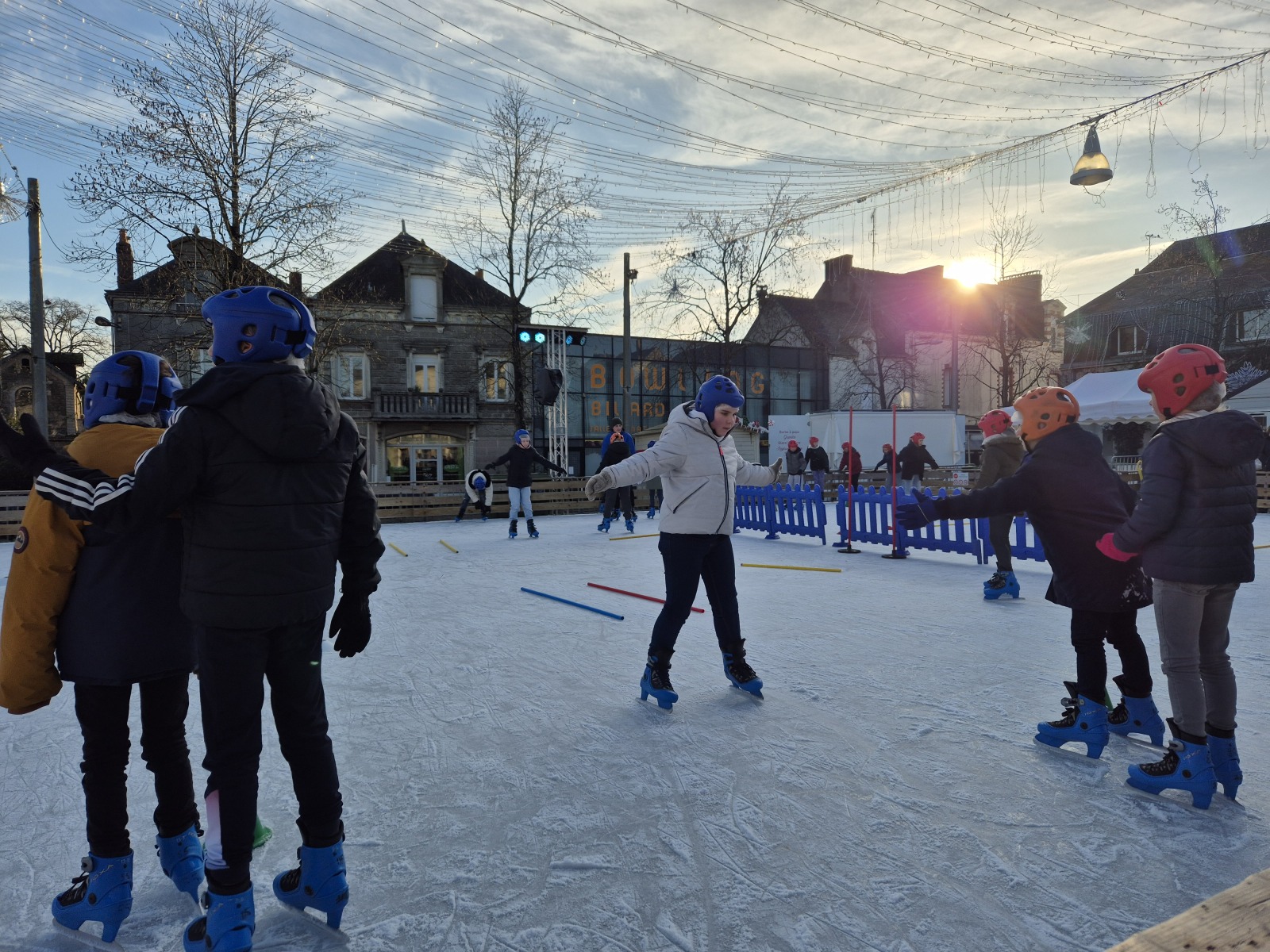 Les élèves de CM1-CM2 ont bénéficié de 3 séances à la patinoire de Châteaubriant. Tous ont enchaîné avec plaisir de nombreux exercices ludiques, tels que des parcours, des jeux en équipe, des slaloms, du freinage, qui leur ont permis d’acquérir une aisance sur les patins.