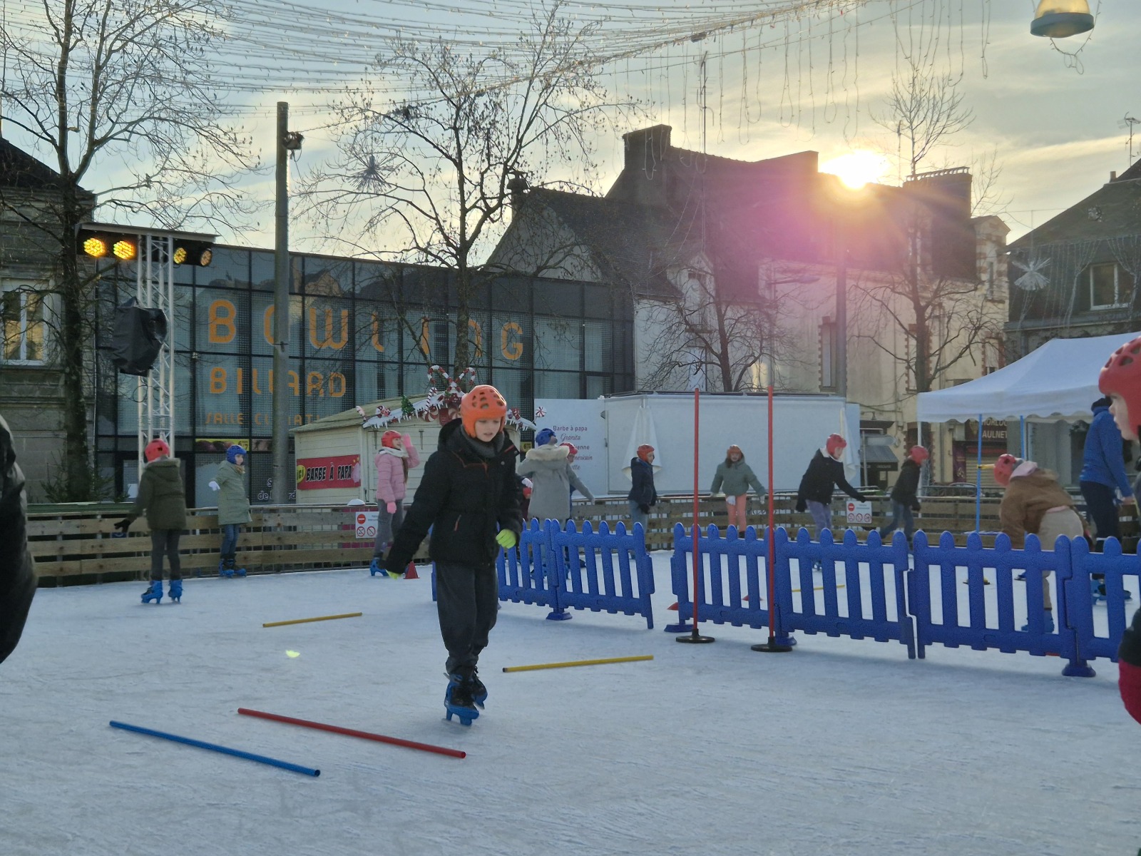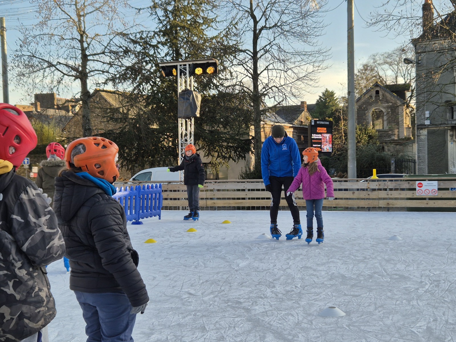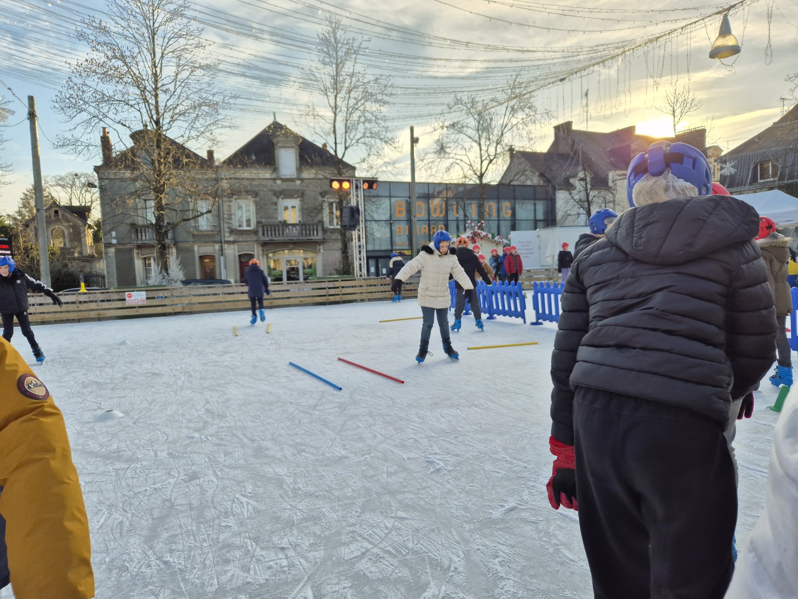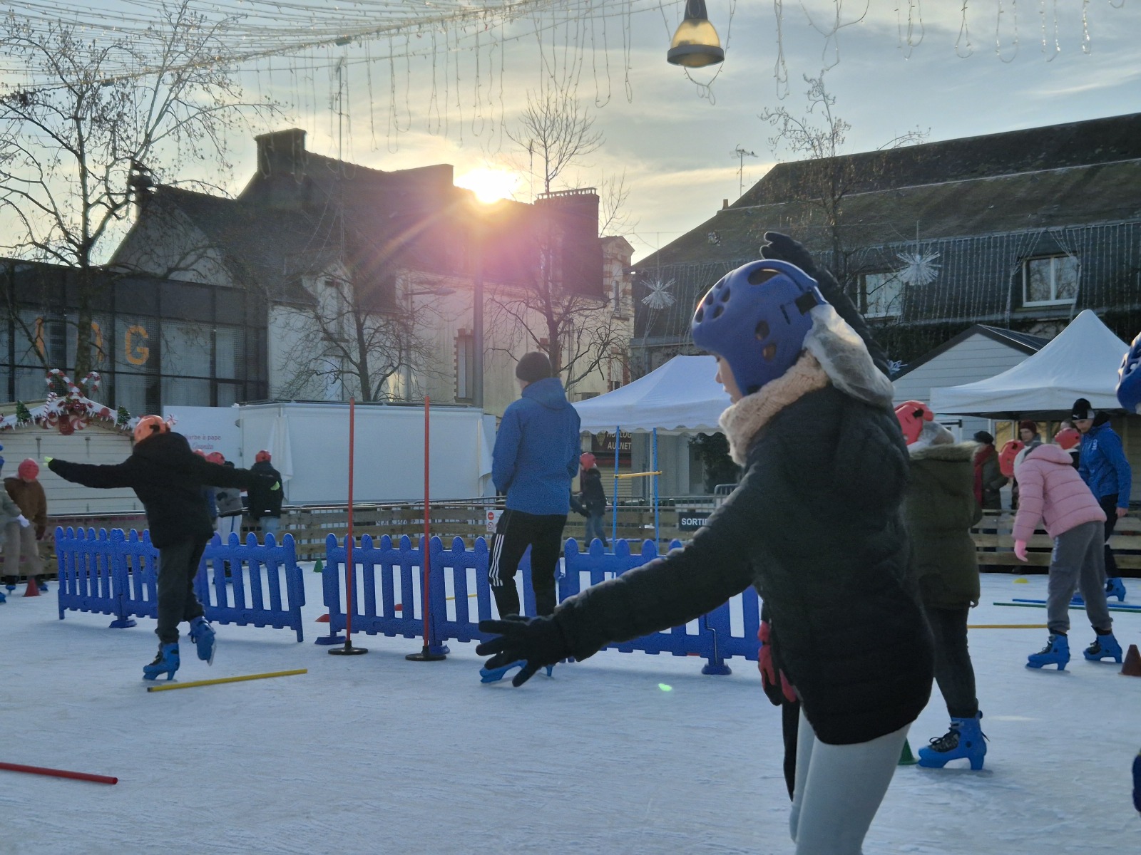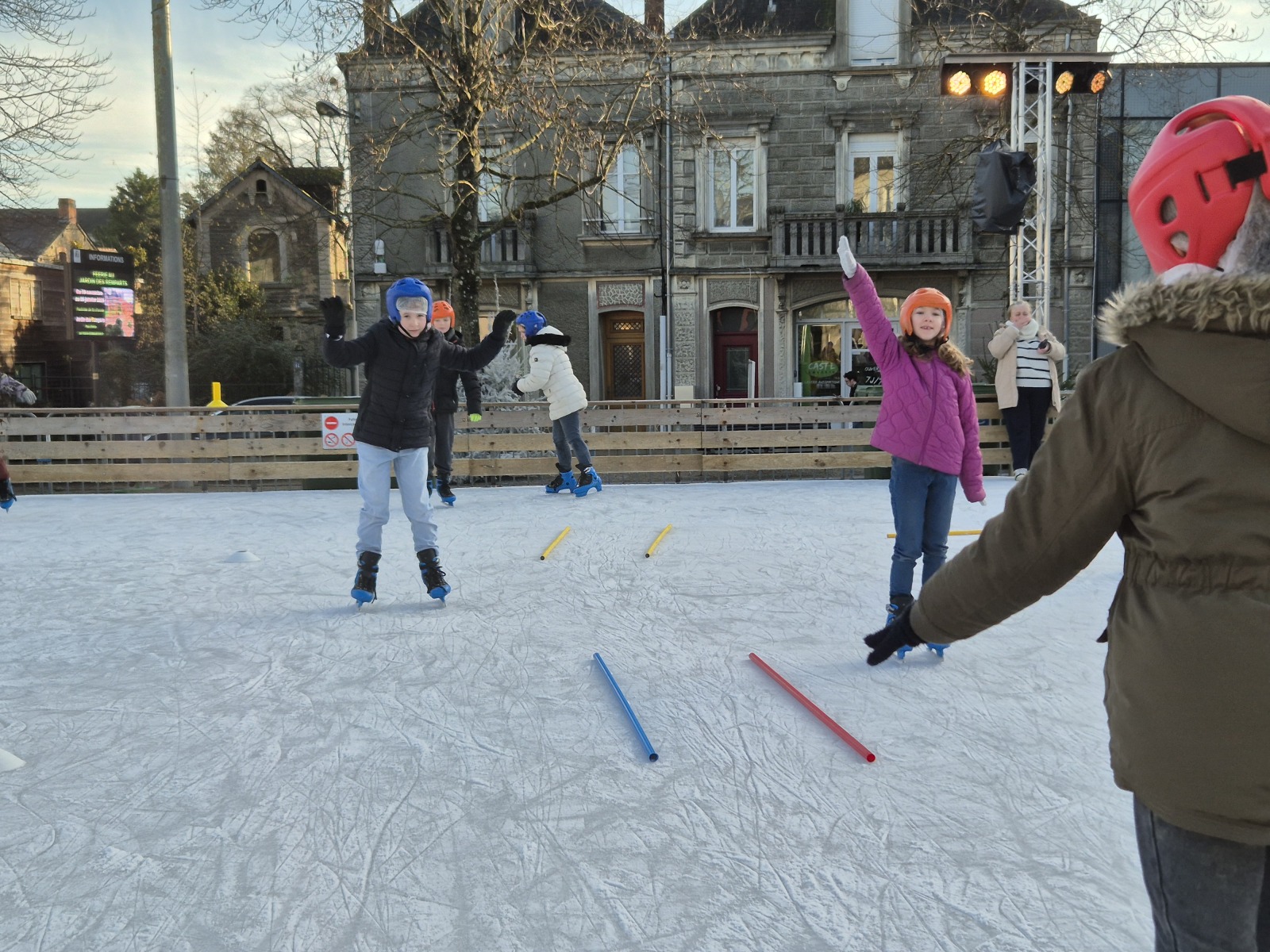 Les élèves de CM1-CM2 ont bénéficié de 3 séances à la patinoire de Châteaubriant. Tous ont enchaîné avec plaisir de nombreux exercices ludiques, tels que des parcours, des jeux en équipe, des slaloms, du freinage, qui leur ont permis d’acquérir une aisance sur les patins.