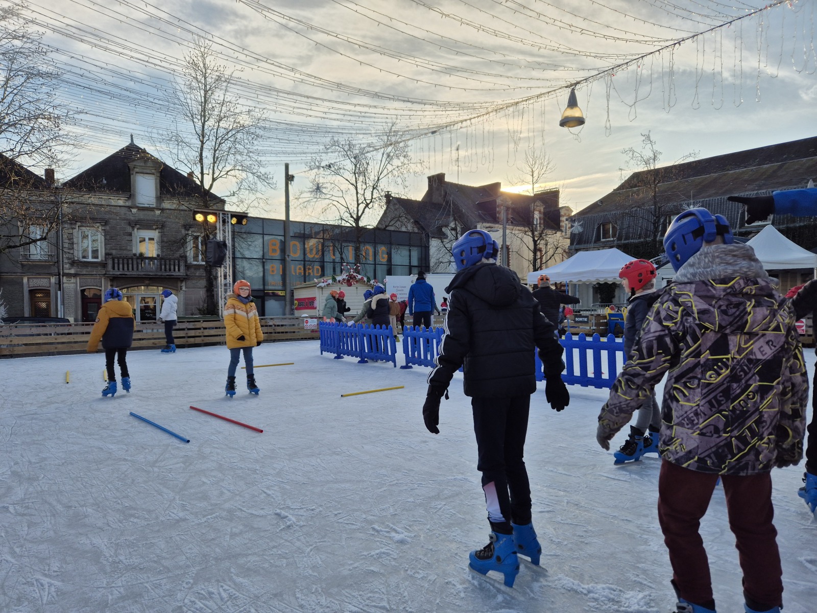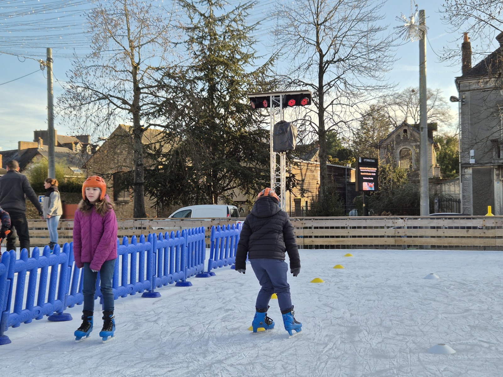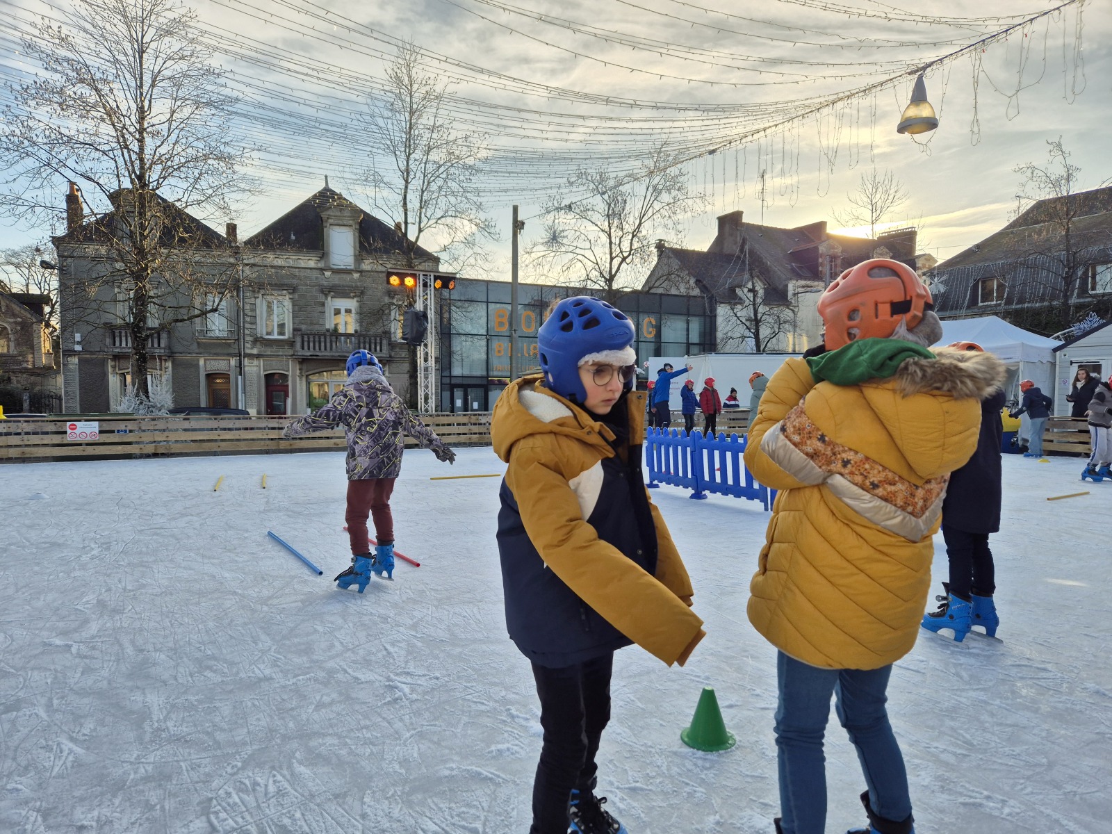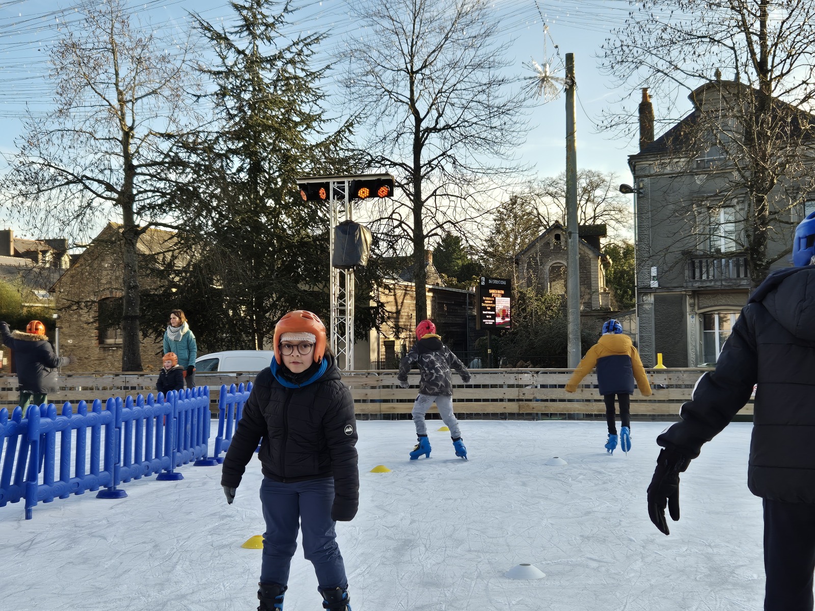 Les élèves de CM1-CM2 ont bénéficié de 3 séances à la patinoire de Châteaubriant. Tous ont enchaîné avec plaisir de nombreux exercices ludiques, tels que des parcours, des jeux en équipe, des slaloms, du freinage, qui leur ont permis d’acquérir une aisance sur les patins.