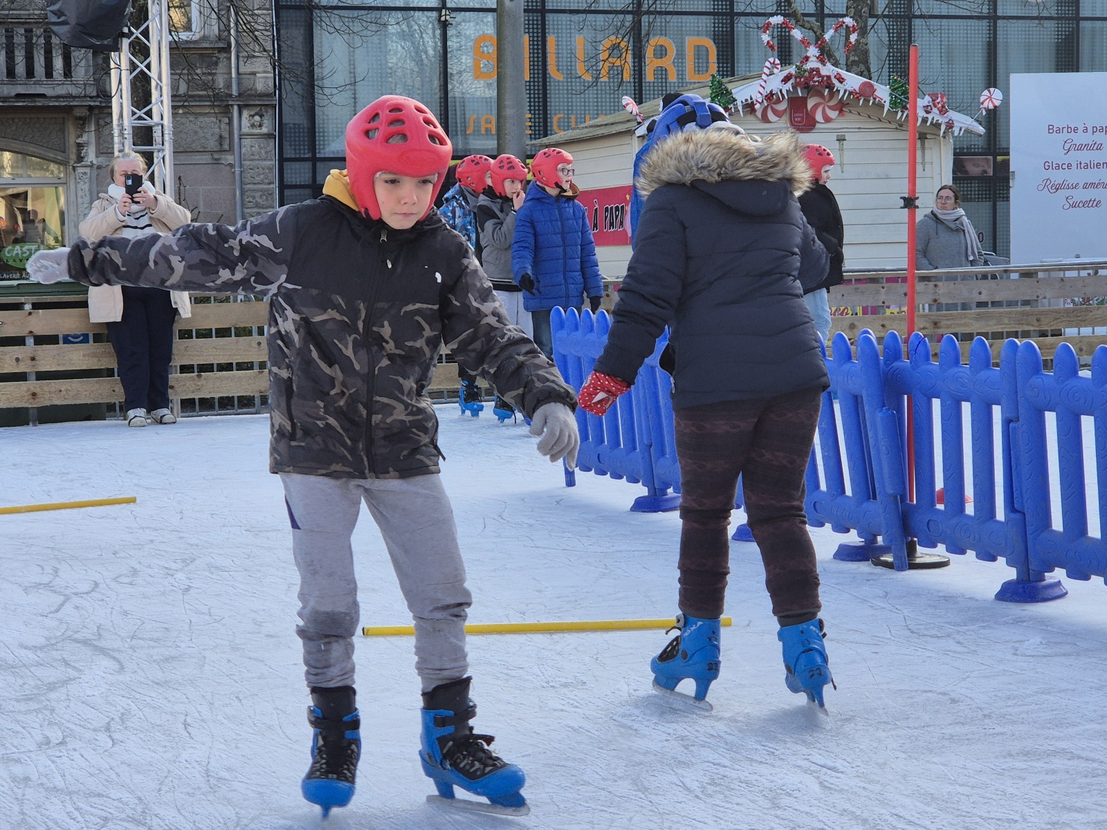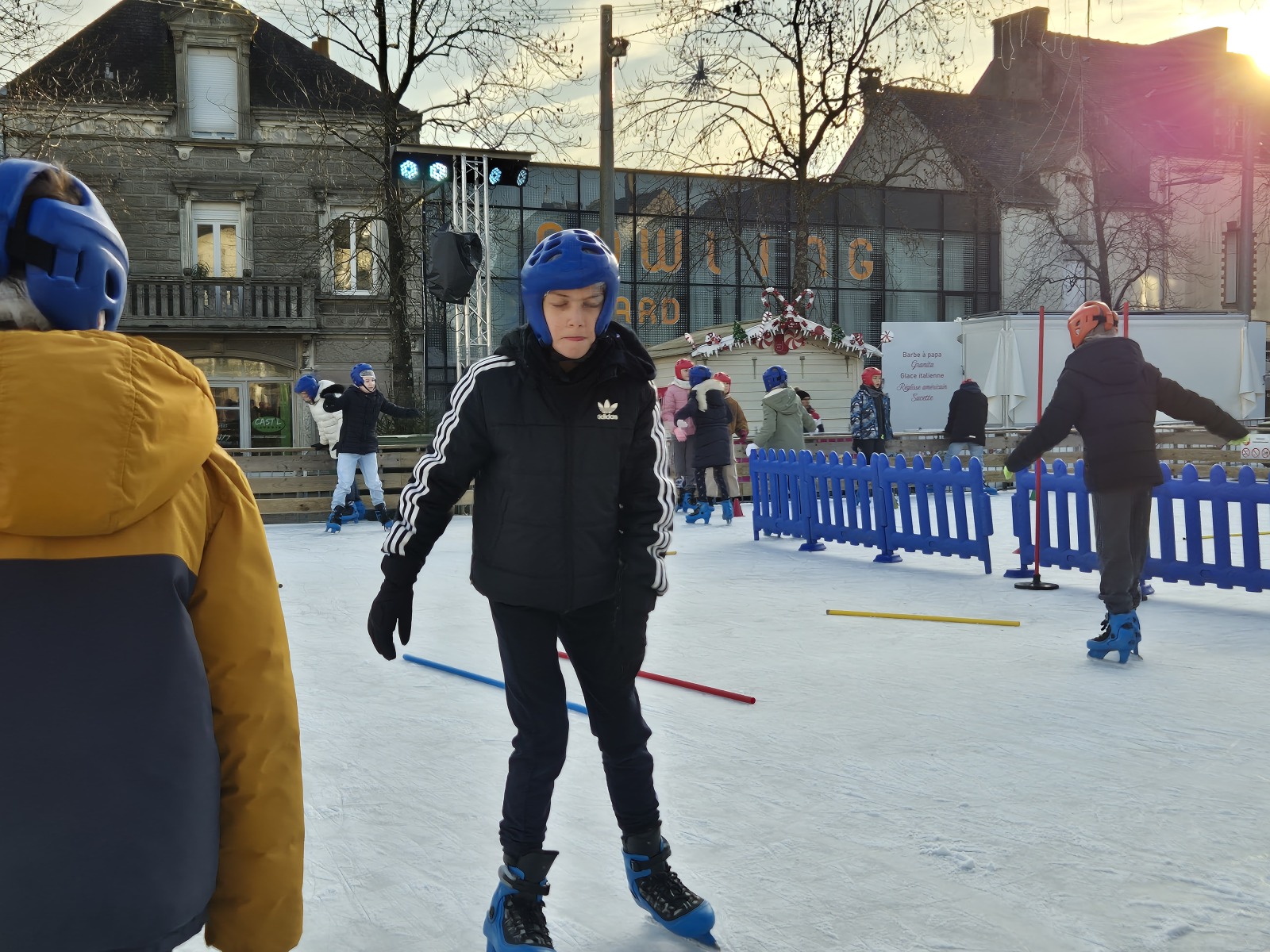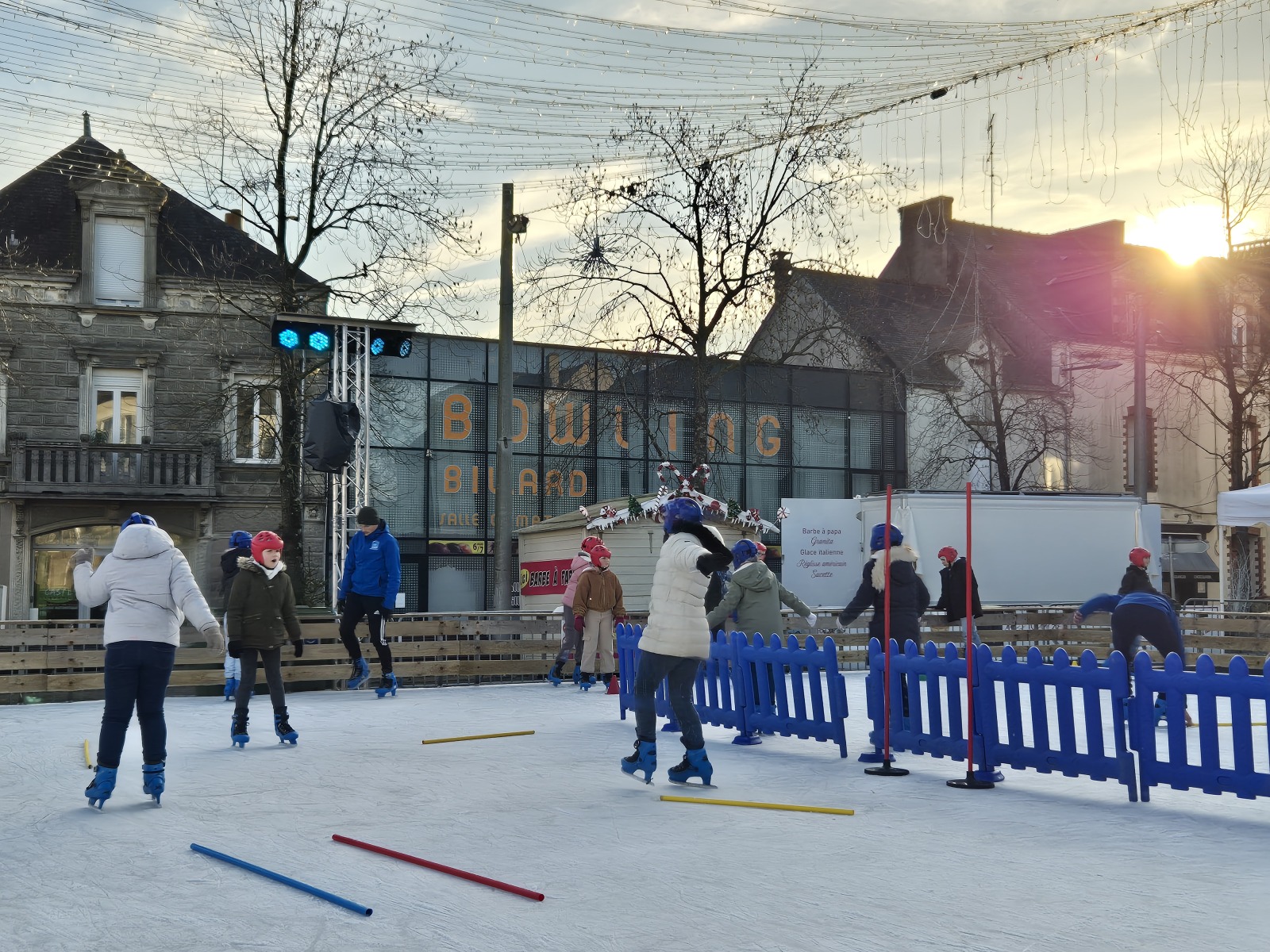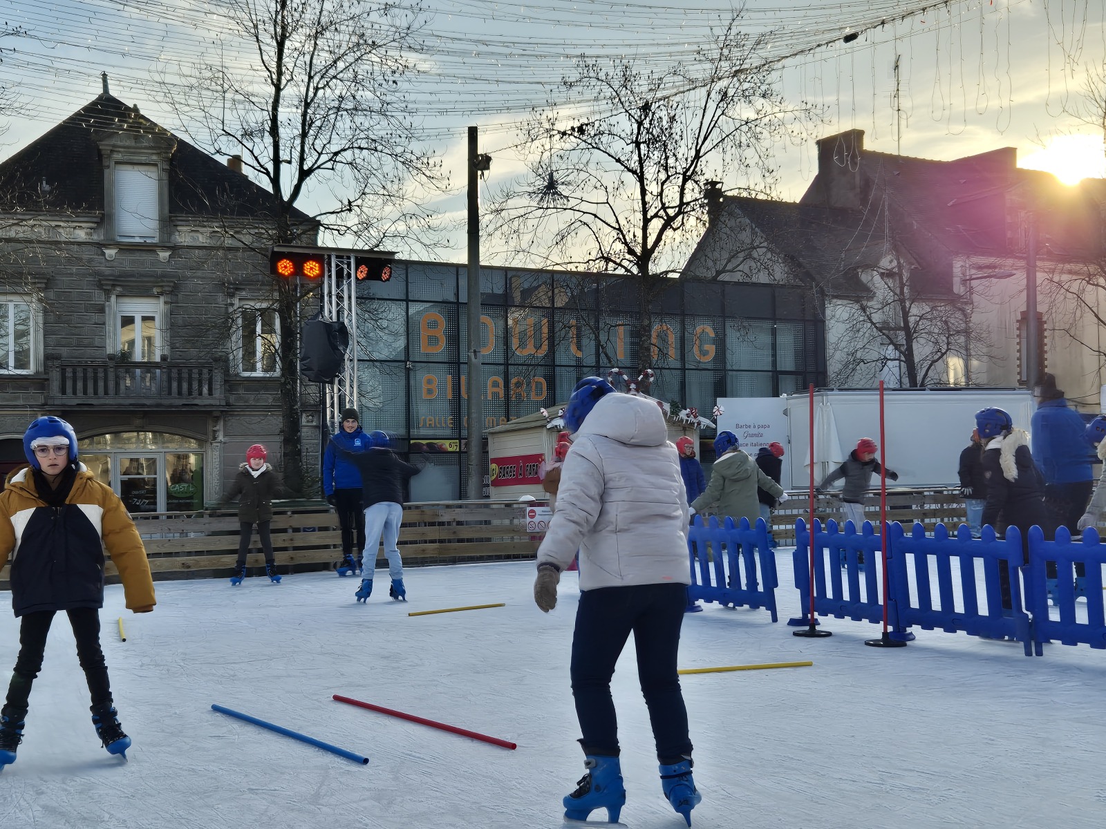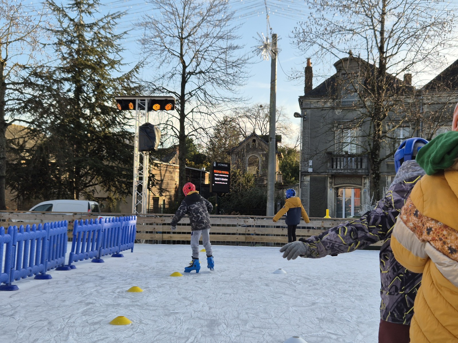 Les élèves de CM1-CM2 ont bénéficié de 3 séances à la patinoire de Châteaubriant. Tous ont enchaîné avec plaisir de nombreux exercices ludiques, tels que des parcours, des jeux en équipe, des slaloms, du freinage, qui leur ont permis d’acquérir une aisance sur les patins.
